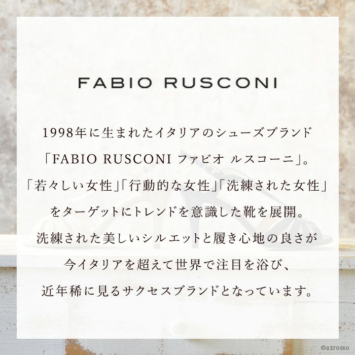 1998年にイタリア・フィレンツェでファビオルスコーニ自身のブランドとして生まれ、人気急上昇中のシューズブランド。「若々しい女性、行動的な女性、洗練された女性」のための、スタイリッシュで美しいデザイン・上質な素材とカラーバリエーション・履き心地の良いアイテムは、世界中のショップで取り扱われています。