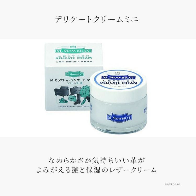 アボカドオイル配合で馴染みやすく皮革をしっとり柔らかに保湿するモゥブレイの革用デリケートクリーム。全てのソフトレザー製品に使えるお手入れクリーム ソフトレザー用 デリケートクリーム 本革 ケア 保湿 レザー 栄養 ツヤだし M.MOWBRAY(モゥブレイ)革靴 財布 バッグ ジャケット