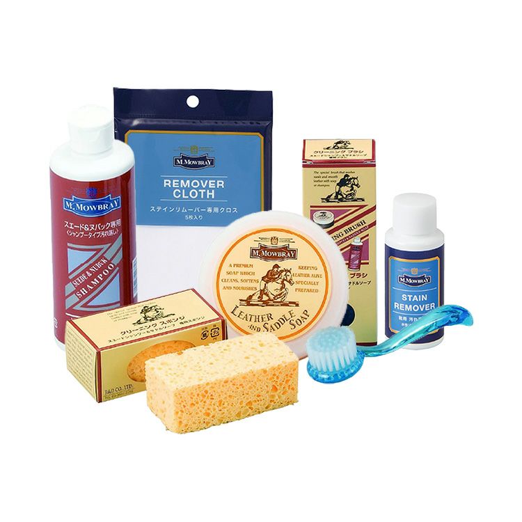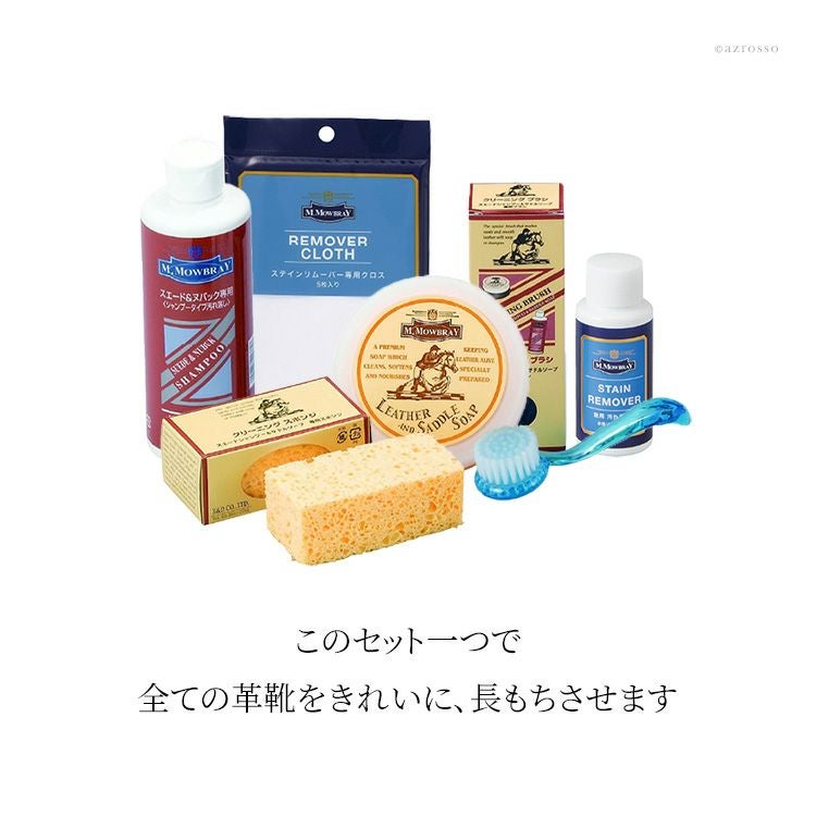 ヨーロッパで人気のシューケアブランド、M.MOWBRAY(モウブレイ)の革靴汚れ落としオールマイティセット。革靴を丸洗浄してしっかり汚れ落としてから磨きましょう。 モウブレイ クリーナー ステインリムーバー 靴磨き 汚れ落とし クロス ブラシ スポンジ 靴 皮革 革靴 栄養補給 手入れセット M.モゥブレィ M.MOWBRAY ソールケア お手入れ 梅雨対策 革 スムースレザー クリーニング ケア