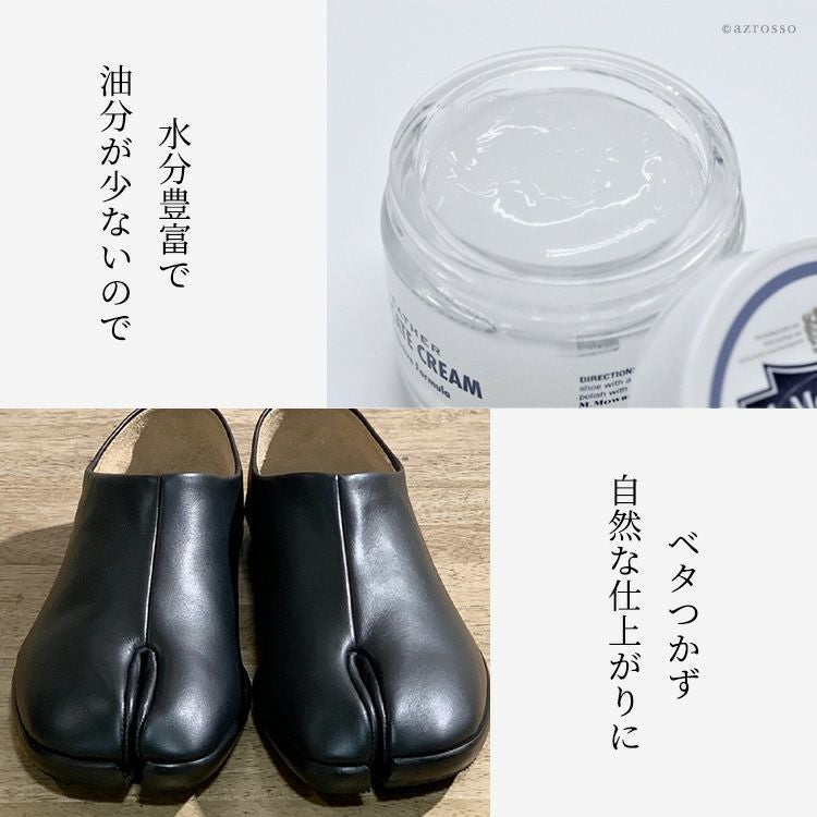 ゼリー状のソフトなクリームですので伸びも良く皮革製品にしっかりと浸透し、皮革の潤いと柔軟性を保ちます。