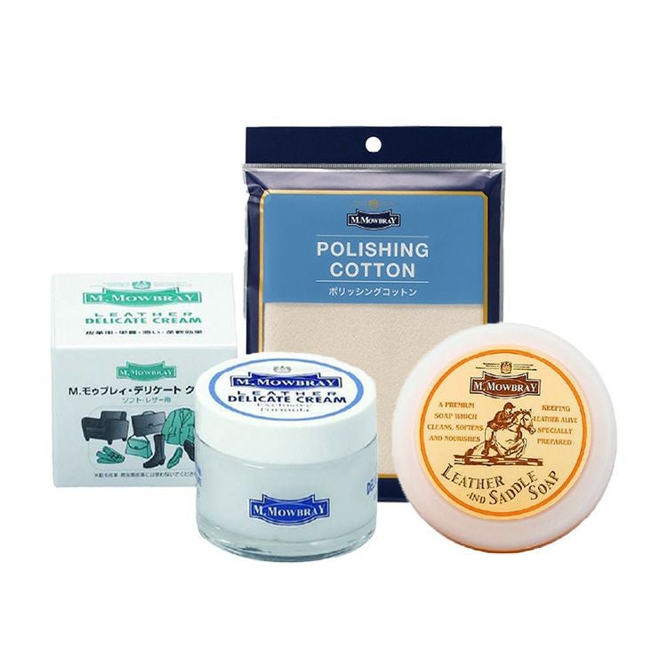 プロユースで評価が高かったケア用品を一般商品化し、さらに日本のファクトリー にて独自製法で開発した商品をラインナップに加えるなど、 品質、伝統、革新をおこなうシューケアブランドとして、M.モウブレイブランドの シューケアプロダクツは日々進化し続けています。