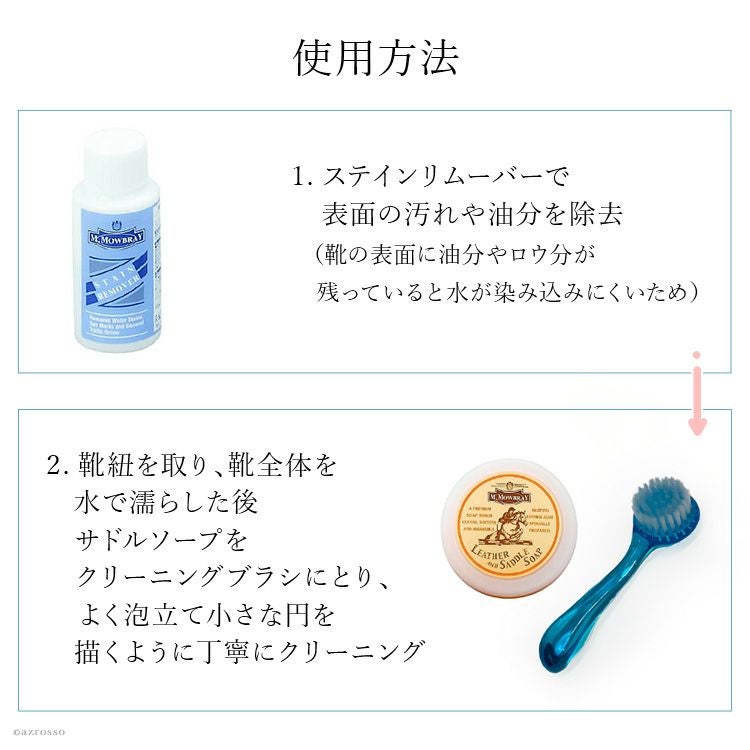 ヨーロッパで人気のシューケアブランド、M.MOWBRAY(モウブレイ)の革靴専用クリーニングセット。スムーズレザーの水洗いができるセットです。 モウブレイ サドルソープ リムーバー クリーナー ブラシ 石鹸 靴 皮革 汚れ落とし 革靴 クリーナー 水洗い 手入れセット M.モゥブレィ M.MOWBRAY 靴の汚れ 靴磨き お手入れ 革