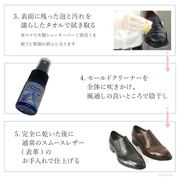湿気がこもりがちなレザーシューズをカビから守る、カビ防止&除去剤も、湿度の高い日本では欠かせない商品です。