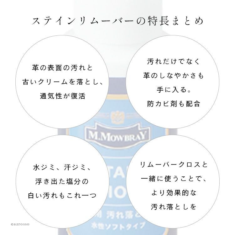 革靴用クリーナー ステインリムーバー M.MOWBRAY(モゥブレイ|モウブレイ) 靴の汚れ落とし ブーツ、パンプスなど全ての革靴のお手入れに 靴磨き初心者にも