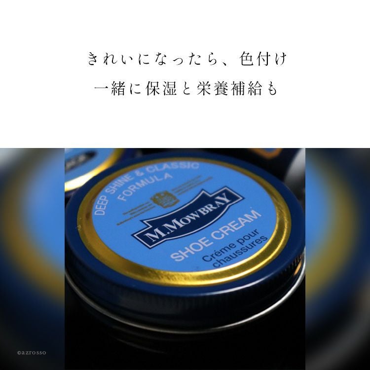 ヨーロッパで人気のシューケアブランド、M.MOWBRAY(モウブレイ)の高級な発色の革靴クリームセット(クロス付き)。大事な靴に高級な色合いを出します。 モウブレイ シュークリーム ジャー ブラシ クロス ポリッシングコットン 靴 皮革 艶出し クリーム 手入れセット M.モゥブレィ M.MOWBRAY レザー シューズ用 お手入れ 靴磨き 革 スムースレザー ケア クリーム