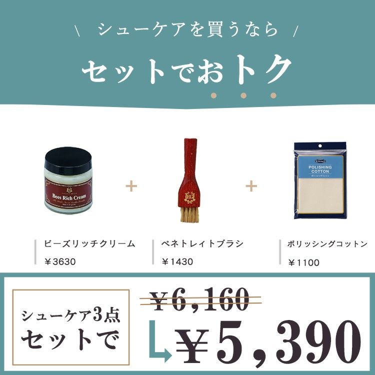 イギリスで伝統のシューケアブランド、ENGLISH GUILD(イングリッシュギルド)の革靴ケアセット。クリーム塗布用スプレッドブラシ・ポリッシングコットン付き。愛用の靴にワンランクの輝きを。 イングリッシュギルド ビーズリッチクリーム スプレッドブラシ ポリッシングコットン 靴磨き クリーム 靴 皮革 革靴 手入れセット イングリッシュギルド ENGLISH GUILD 靴磨き ケア お手入れ 革 クリーム ニュートラル ミディアムブラウン ダークブラウン ライトブラウン バーガンディ ネイビー