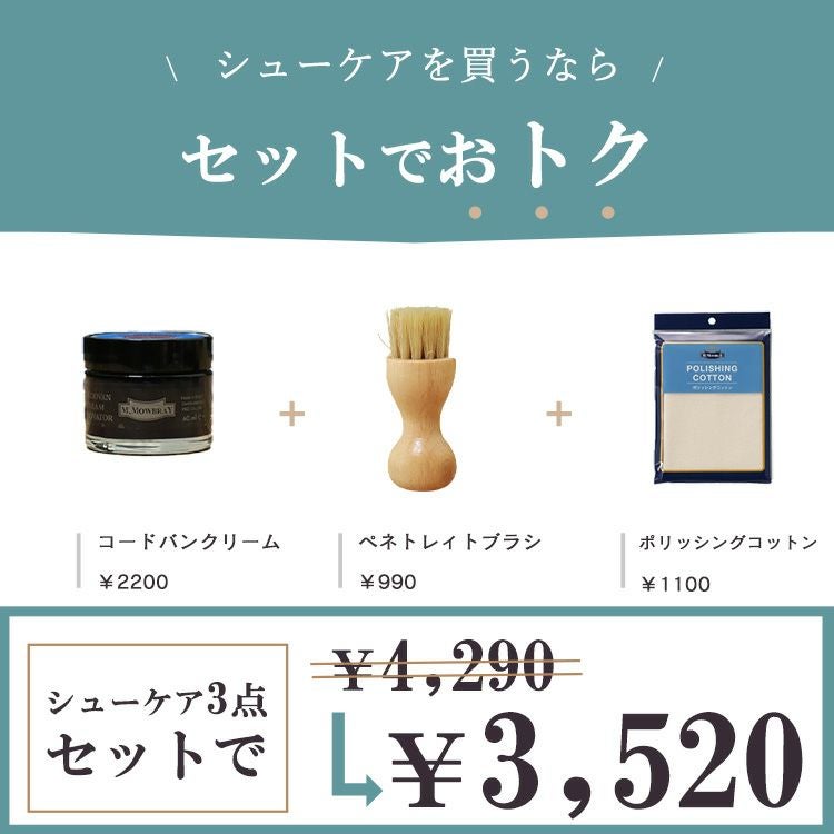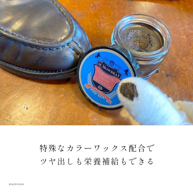 ヨーロッパで人気のシューケアブランド、M.MOWBRAY(モウブレイ)の高級な発色のコードバン用革靴クリームセット(クロス/ブラシ付き)。大事な靴に高級な色合いを出します。 モウブレイ コードバンクリームレノベーター ブラシ クロス ポリッシングコットン 靴 皮革 艶出し クリーム 手入れセット M.モゥブレィ M.MOWBRAY レザー シューズ用 お手入れ 靴磨き 革 スムースレザー ケア クリーム