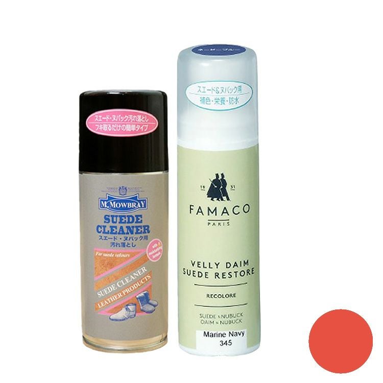 ヨーロッパの人気シューケアブランド、M.MOWBRAYのスエードヌバック専用汚れ落としクリーナーとFAMACOの補色リキッドがセットに。スエードヌバックシューズを簡単お手入れできます。 モウブレイ スエードクリーナー ヌバック 簡単 汚れ落とし ファマコ スエードカラーダイムリキッド 栄養 補色 防水 起毛皮革 革靴 保革 お手入れ おうち時間 スエード 靴 ケア 手入れセット M.モゥブレィ M.MOWBRAY FAMACO