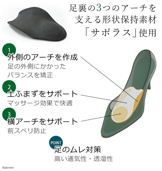 前滑り防止 インソール CV スタイリッシュウォーク 歩行緩和 バランス矯正 衝撃吸収 サポラス 土踏まず サポート パンプス クッション ヒール【通常ネコポス配送】
