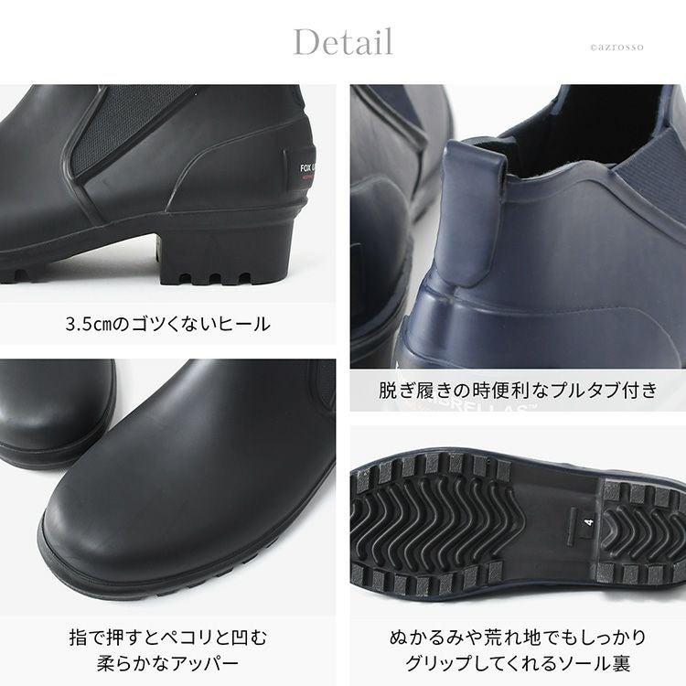 フォックスアンブレラ レインブーツ 日本製 サイドゴア レディース 完全防水 ショート丈 ヒール 3cm 天然ゴム おしゃれ 通勤
