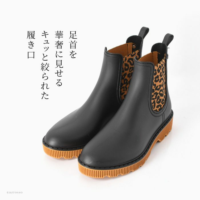 ▼特徴:レインブーツ|サイドゴアブーツ|チェルシーブーツ|雨靴|長靴|レオパード|ヒョウ柄|豹柄|アニマル柄|歩きやすい|ローヒール|痛くない|履きやすい|ショート丈|レインシューズ