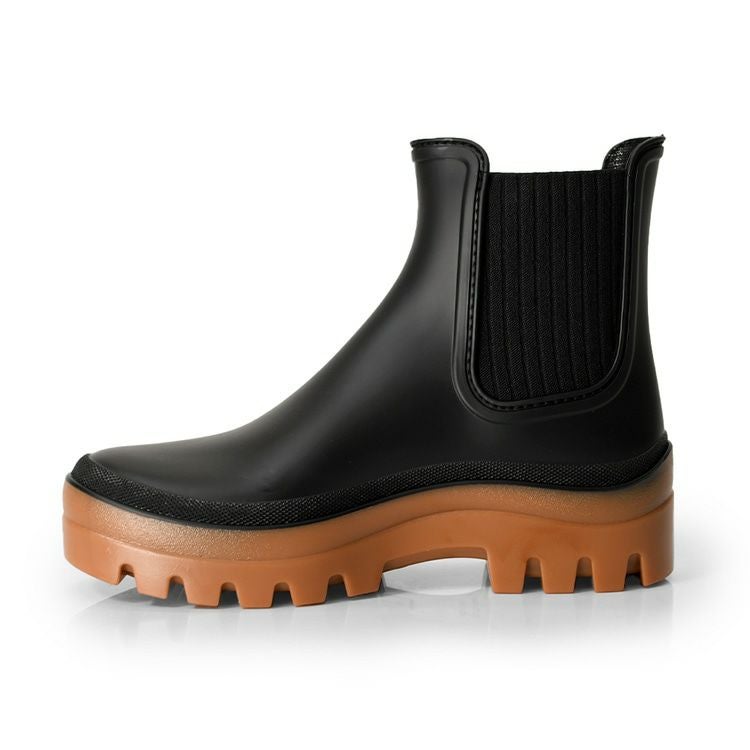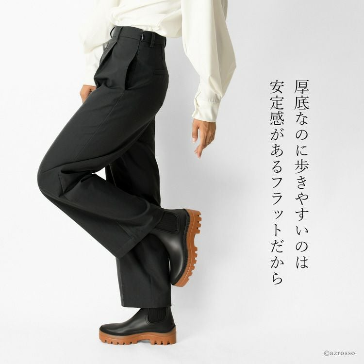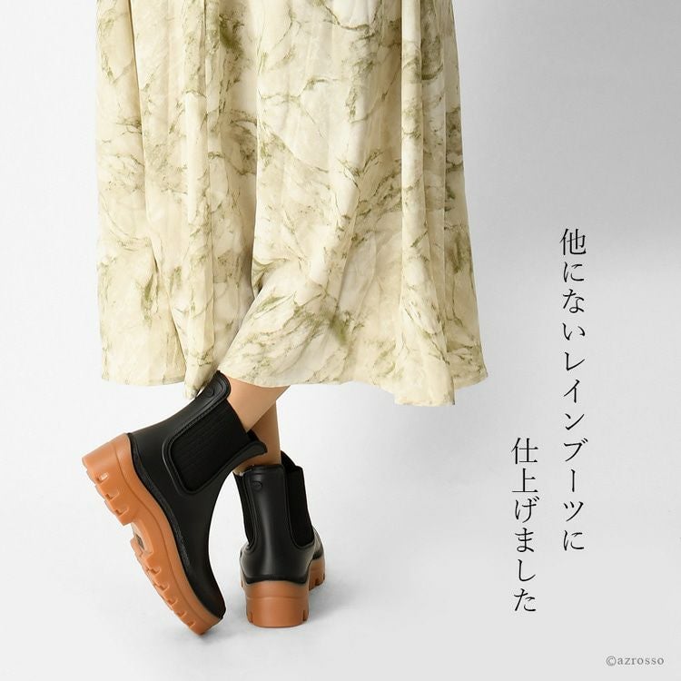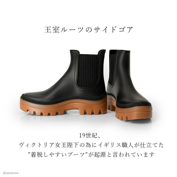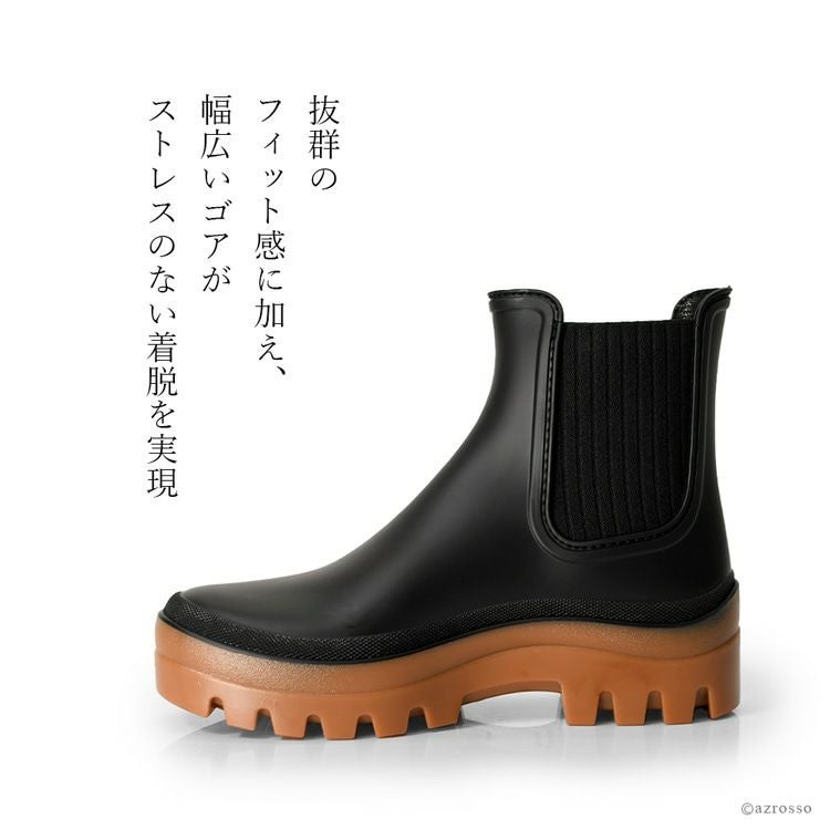 ▼特徴:サイドゴアブーツ 雨靴 長靴 ボリュームソール ショート丈 レインシューズ ラバーブーツ バイカラー