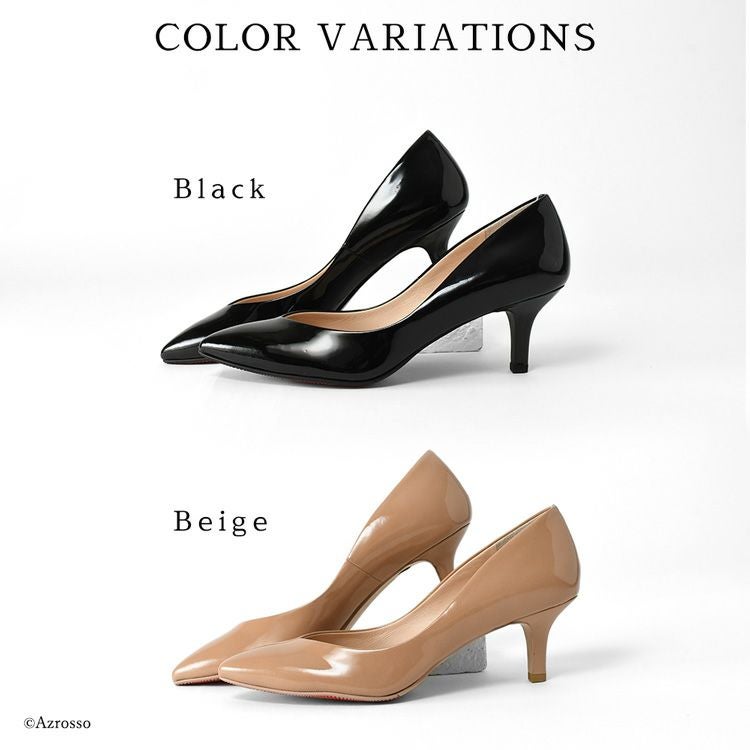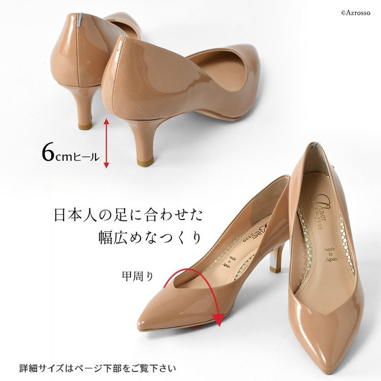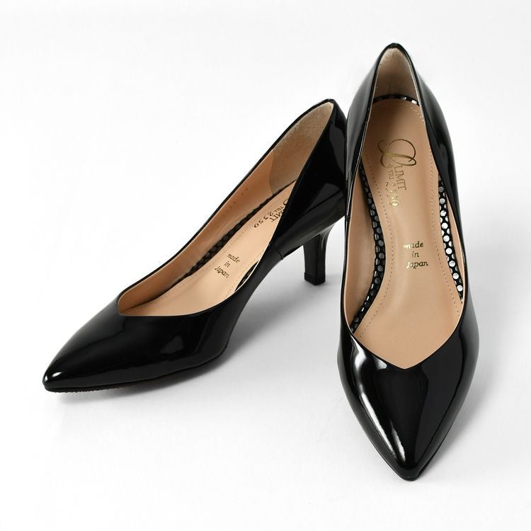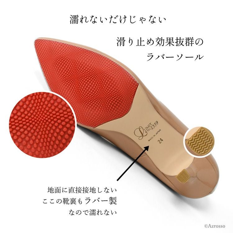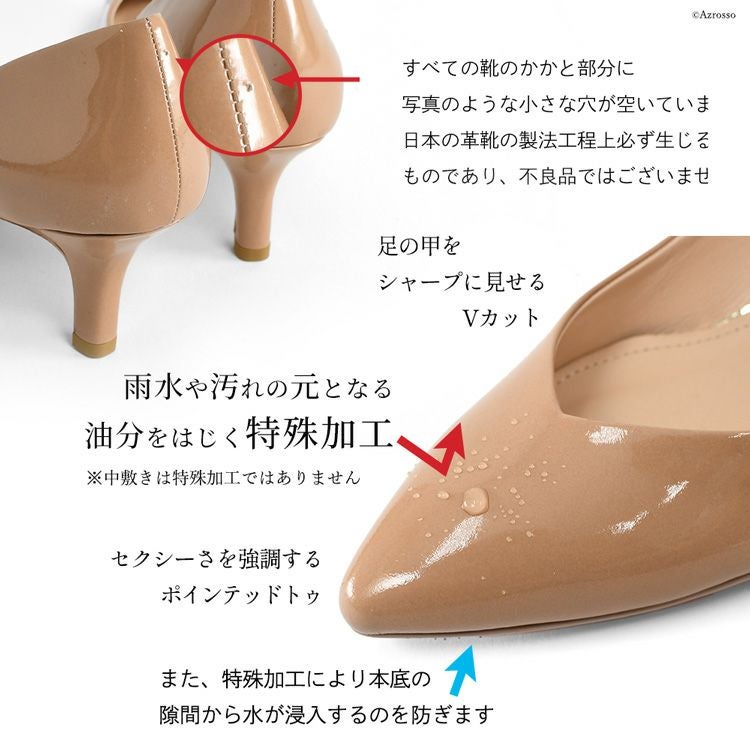 21.5cm-25cm│レイン対応 Vカット エナメル パンプス 本革 レインパンプス ポインテッドトゥ 日本製