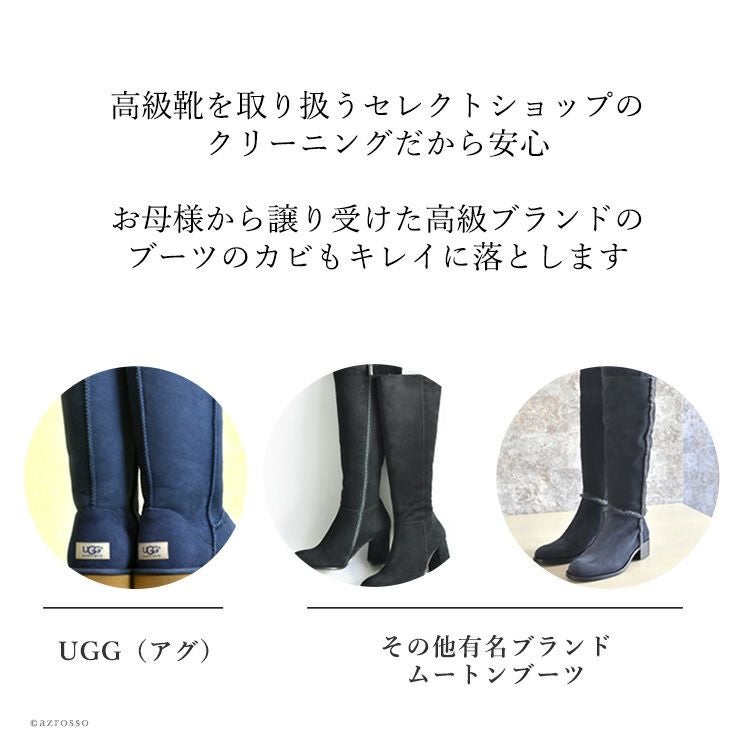 また、よくありがちなのが「ブーツを履こうと思ったらカビが生えていた」ということ。お手入れをせずにブーツを放置すると、湿気の多い夏の間にカビが繁殖してしまうのは当たり前とも言えるかもしれません。また、ムートンブーツの場合は雪ジミを放置すると、くっきりシミが残ってしまうこともあります。次の年もずっと美しく清潔にブーツを履くために、クリーニングをしっかりと行ってくださいね。