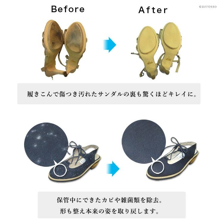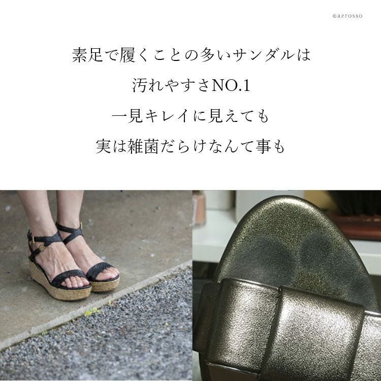 素足で履くサンダルは、言わずもがな汗やニオイのお手入れは必須。一日履いたサンダルをそのまま放置し続けると、目では見えなくとも殺菌が繁殖してしまいます。また、サンダルを長く履いているとできてくる黒い足形も、ふと靴を脱いだ時に気になりますよね。一番汗をかく季節に履くサンダルは、やはり劣化しやすいのが現実。思い入れのあるお気に入りのサンダルこそ、クリーニングが必要です。