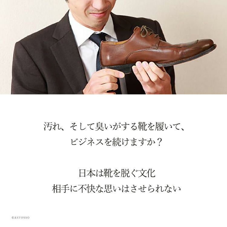 日本は海外と違って、仕事中でも靴をよく脱ぎ履きする機会の多い国ですよね。だからこそ臭いには敏感で気を使うと思うのですが、忙しく仕事をして、夜は疲れる毎日が続くと、どうしても靴のお手入れは怠りがちになってしまいます。大切な取引先の接待でお座敷にあがるときなど、もし足が臭ってしまったりしたら、相手は嫌な顔しなくても大惨事です。ビジネスマンにとって、「清潔感」はとても重要。特に欧米では、スーツよりも靴に気を使う人が多く、一流のビジネスマンこそ「相手の足元を見てその人の仕事ぶりを判断する」と言われているほど。しかし。靴の表面はよく磨く人が多いのに、靴の中まで念入りにケアする人は少ないというのが現実です。身だしなみのケアが必須なビジネスマンの皆様はもちろん、「ちょっと臭いが気になってたのよね…」なんて思っていらっしゃる奥様方にもこちらのクリーニングはおすすめです。