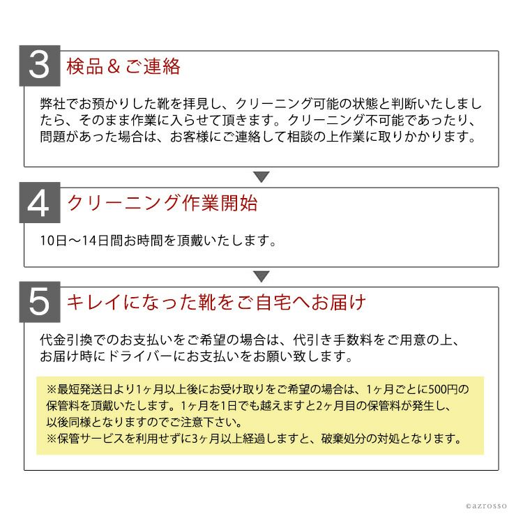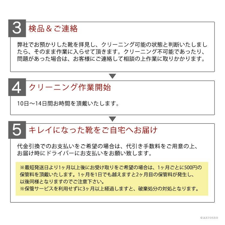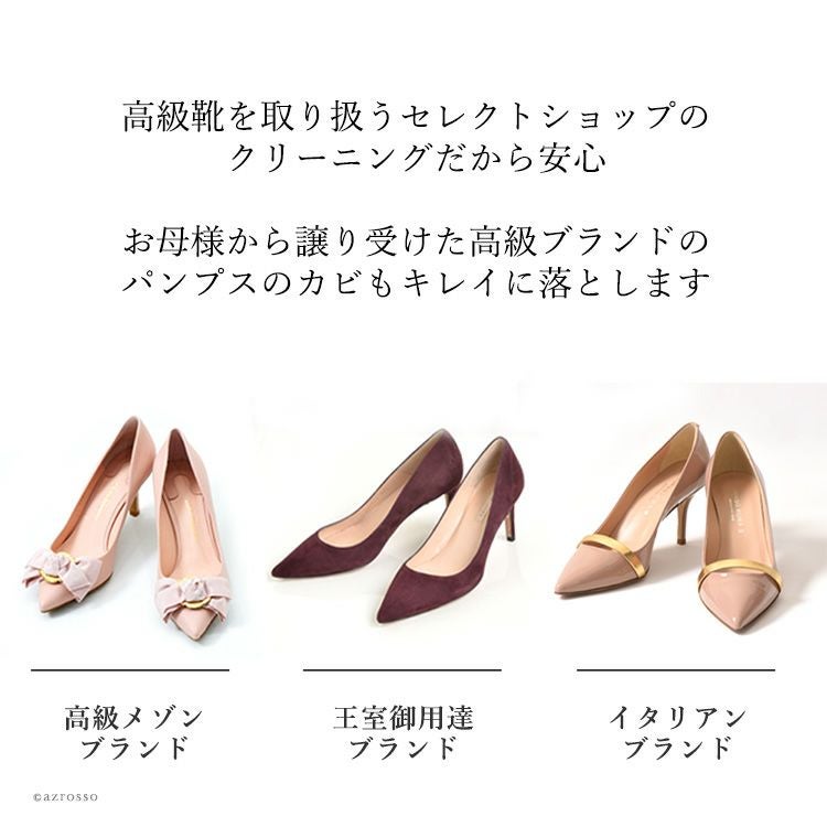 また、毎シーズンの終わりに靴をクリーニングするのと、まったくしない場合と比べ、約3倍長く履くことが出来ると言われています。 毎日使う通勤シューズはクリーニングをすることで劣化を防ぎ、コスパ良く。思い入れのある大切な高級パンプスやサンダルも、クリーニングをすることで長く履くことができます。