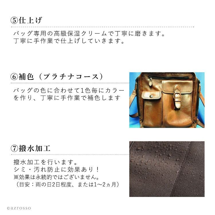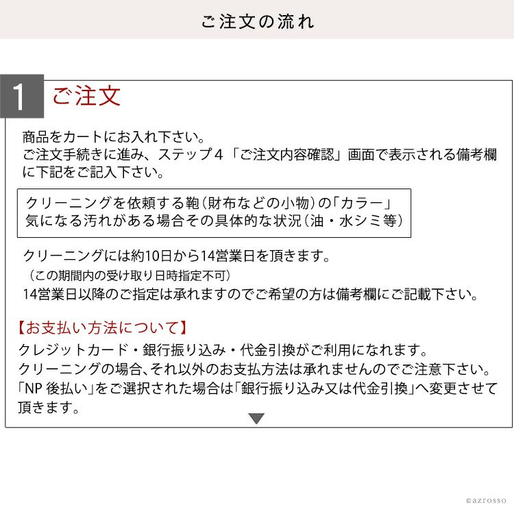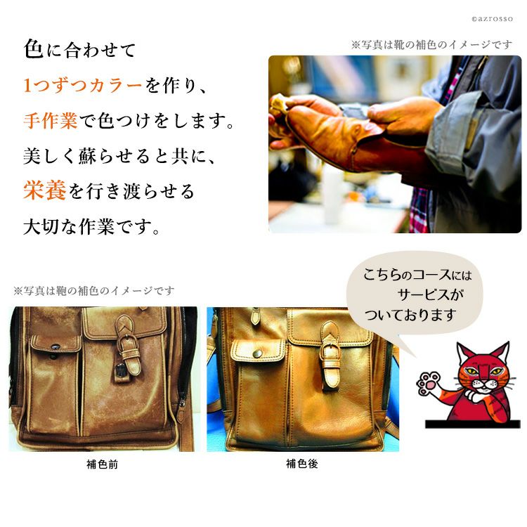 毎日使うバッグやお財布は、特にこれといって汚したりダメージを受けたりしなくても、ふとした時に「なんか汚れてるな…」と気付いたりしますよね。端っこの方の色が剥げてきたり、いつの間にか黒い汚れがついていたり。それだけではなく、バッグの中で飲み物やクリーム等が漏れていたなんていう大惨事も…知らず知らずのうちに実はけっこう汚れているバッグや財布ですが、自宅でお洗濯!というわけにはいかないのでここはプロにお任せを。レザーを知り尽くしたクリーニング職人が、あなたの大切なバッグや財布を生まれ変わらせます。