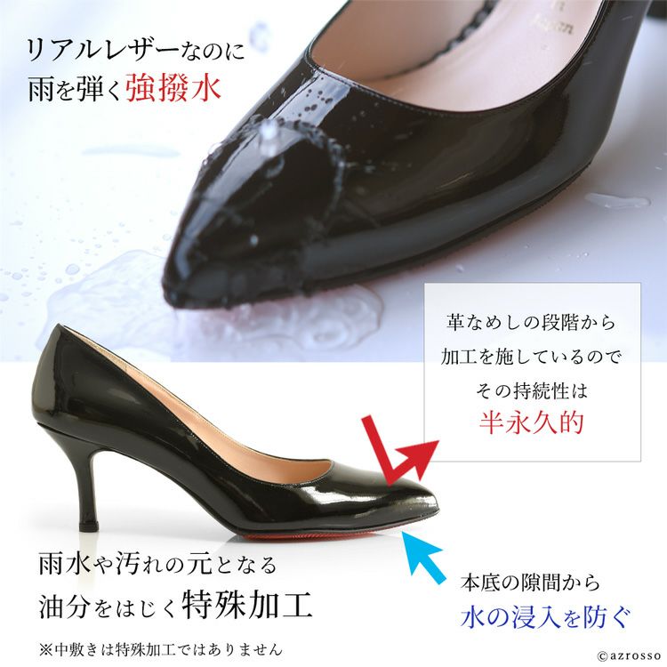 本革なのに雨も油も弾き飛ばす、強撥水仕様のオシャレなレザーパンプス フォーマルパンプス ビジネスパンプス 晴雨兼用 フォーマルパンプス エナメル ポインテッドトゥ パンプス ヒール 7cm 冠婚葬祭 卒業式 入学式 卒園式 入園式 面接 保護者会 セレモニー 黒 ブラック ベージュ 小さいサイズ 大きいサイズ