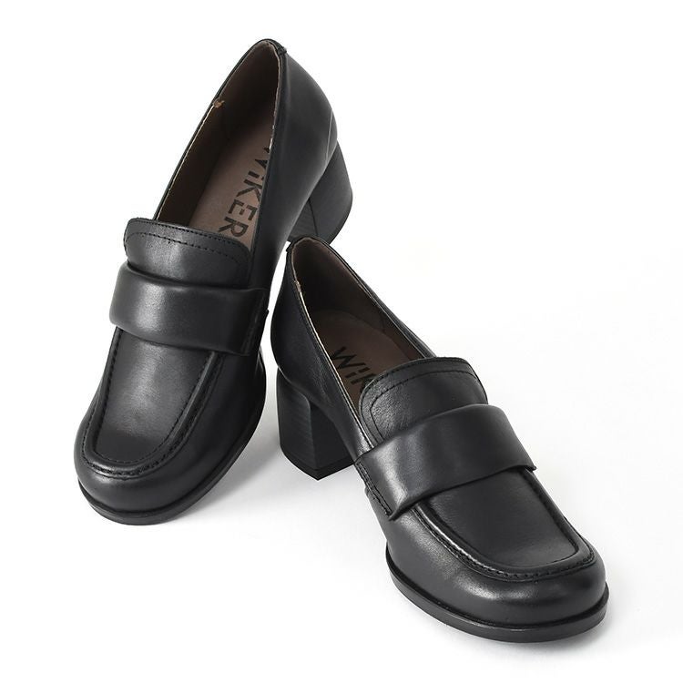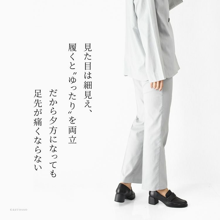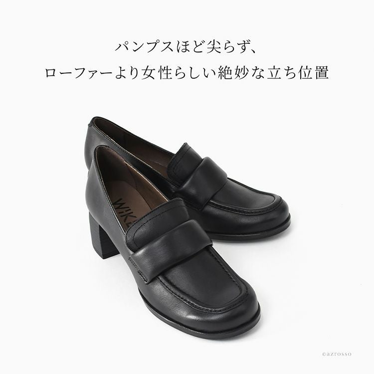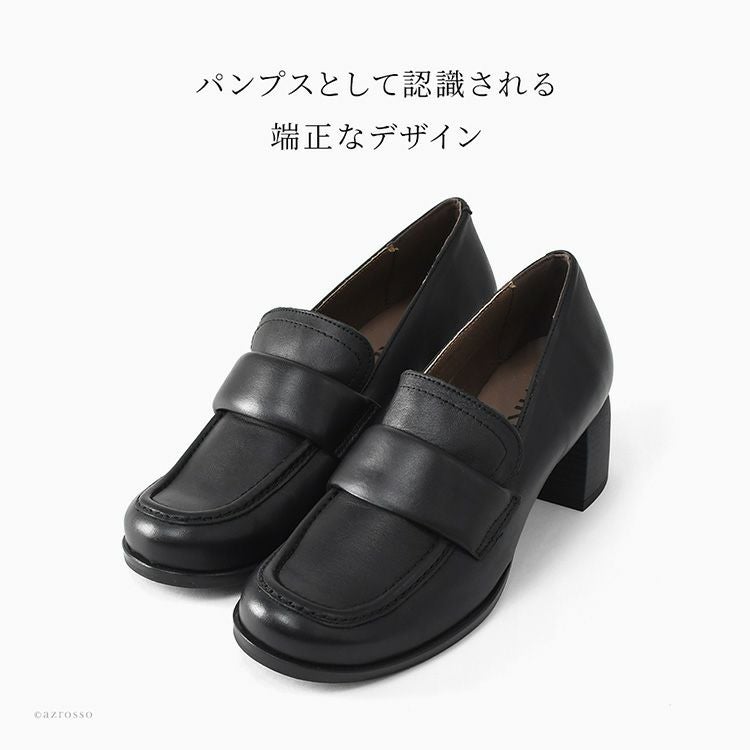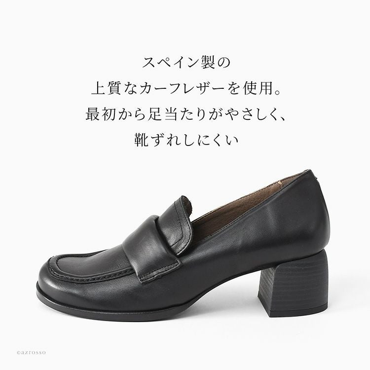 ローファーの安定感と女性らしさを両立。スクエアトゥで幅はゆったり。外反母趾気味でも安心。5cmヒールなのに歩きやすい、スペイン製本革ローファーパンプス。冠婚葬祭やセレモニーにも履けます スペイン製 本革 ローファーパンプス レディース 5cm ヒール ローファー スクエアトゥ 黒 歩きやすい 履きやすい 太ヒール 幅広 冠婚葬祭 セレモニー ビジネス
