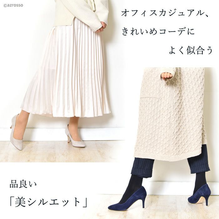 22cm-25.5cm|スエード パンプス ヒール7cm レザー アーモンドドトゥ 本革 ブラック 黒 ネイビー 紺 トープ ブラウン ベージュ ピンク ブルー 青