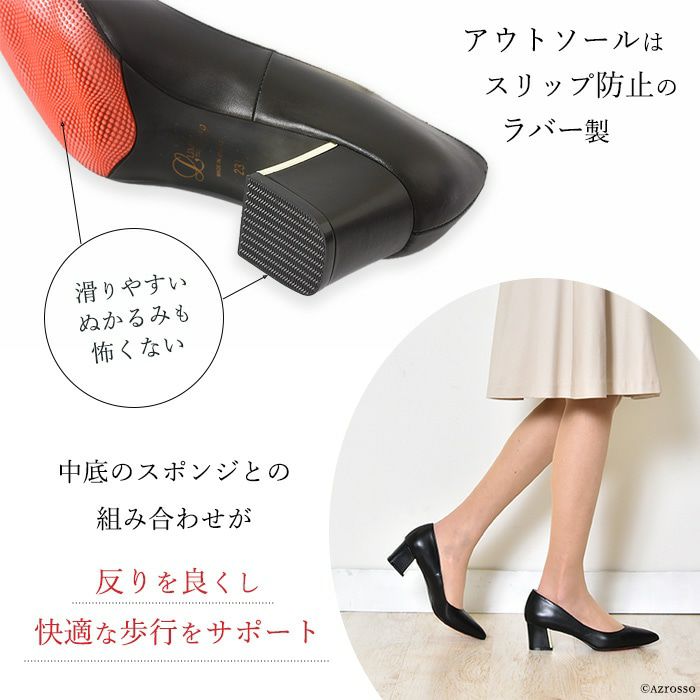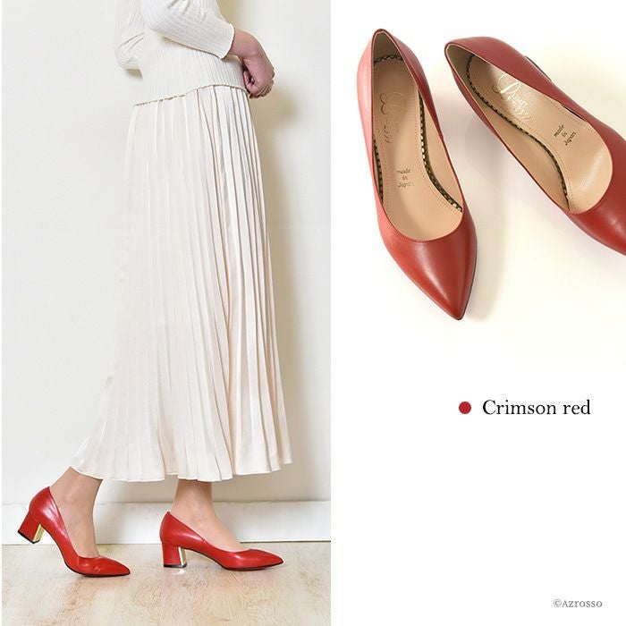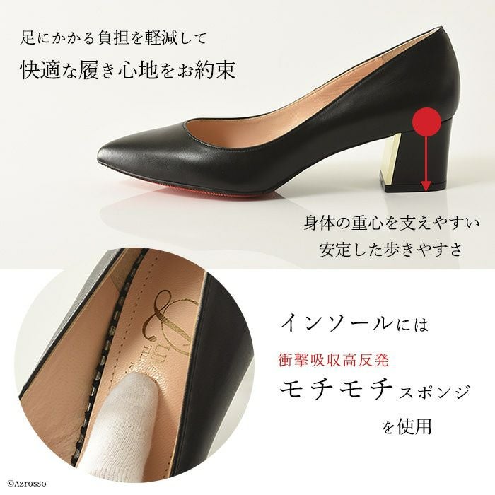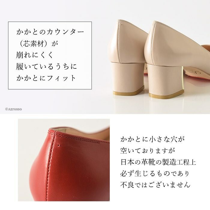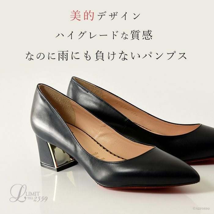 21.5-25.5cm│ヒール5cm レザーパンプス チャンキーヒール オールウェザー|リミットティル2359
