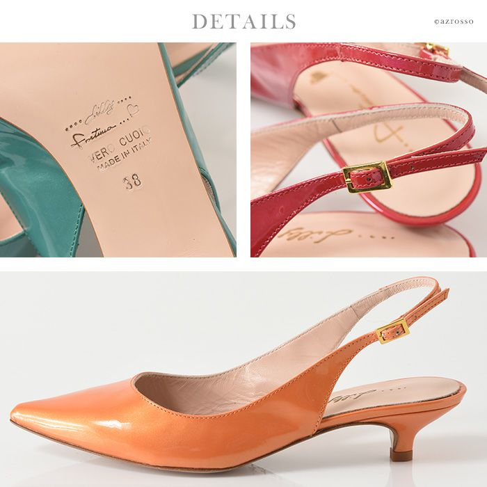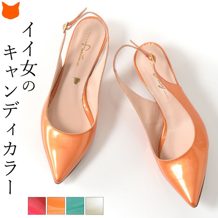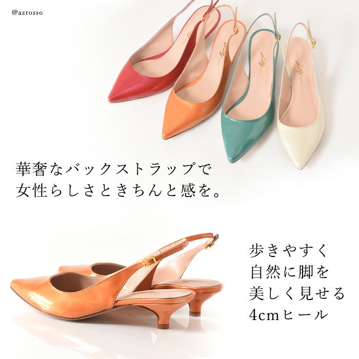 23cm-25cm│イタリアブランド リリー・フォルトゥーナ(LILLY FORTUNA)バックストラップパンプス 4cm パンプス サンダル ローヒール ポインテッドトゥ エナメル 春夏パンプス