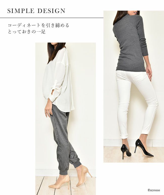 ポインテッドトゥのエレガンスな印象とミドルヒールの美脚効果を狙えるスタイル。甘い感じのコーデを引き締めるのにも重宝します。