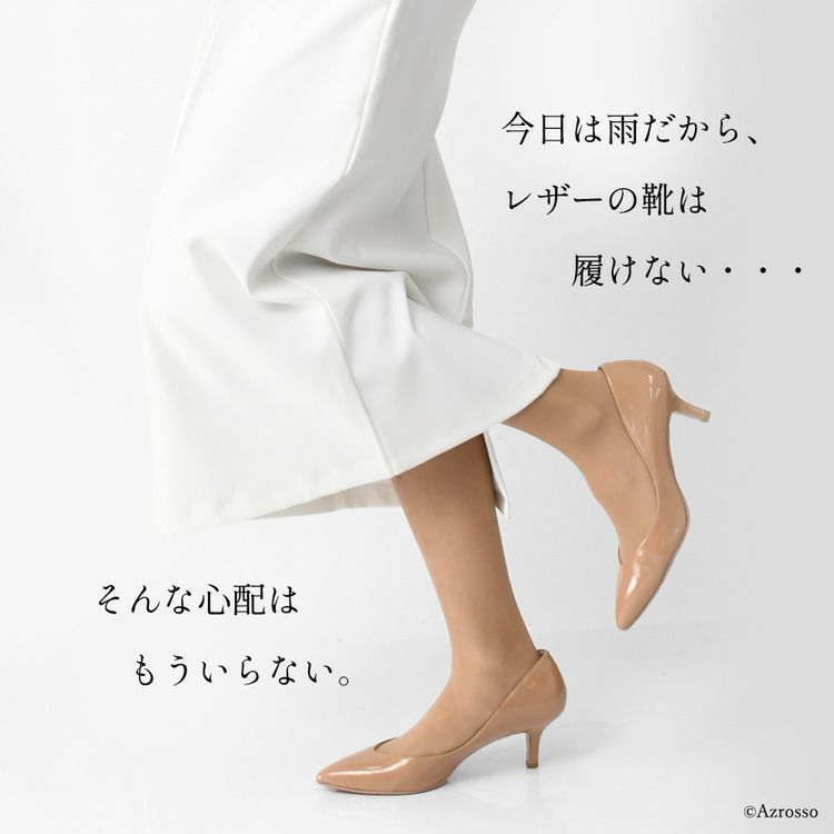 21.5cm-25cm│レイン対応 Vカット エナメル パンプス 本革 レインパンプス ポインテッドトゥ 日本製