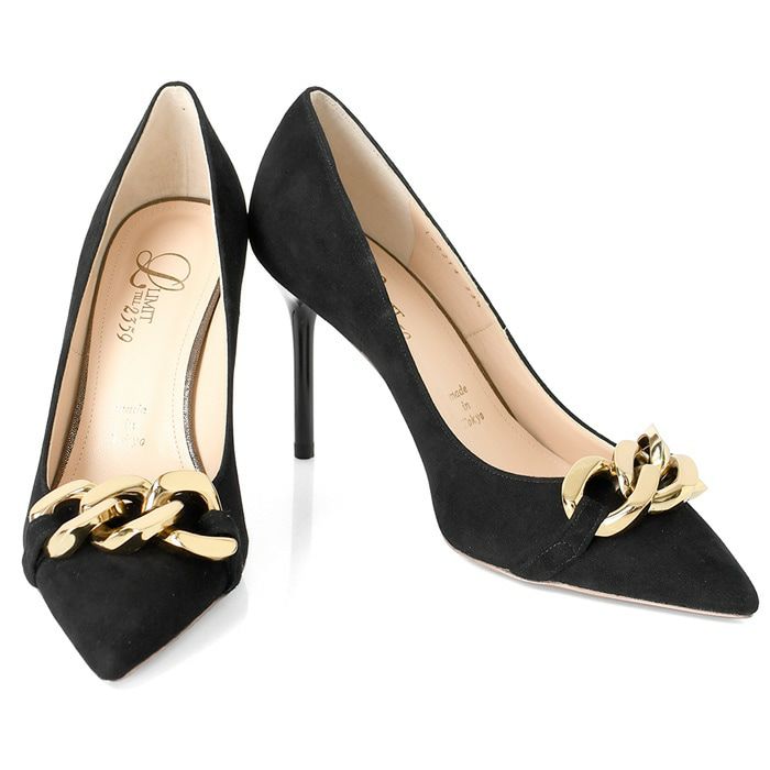 大振りブロンズチェーンがインパクトのある大人カッコイイ足元を作るハイヒールパンプス。圧倒的美脚と足長を叶える9.5㎝の細身ヒール 22cm-24.5cm|ヒール9.5cm スエード レザー パンプス 細身ヒール リミットティル2359 LIMIT TILL 2359