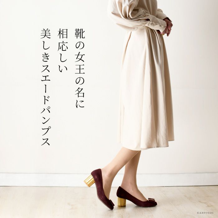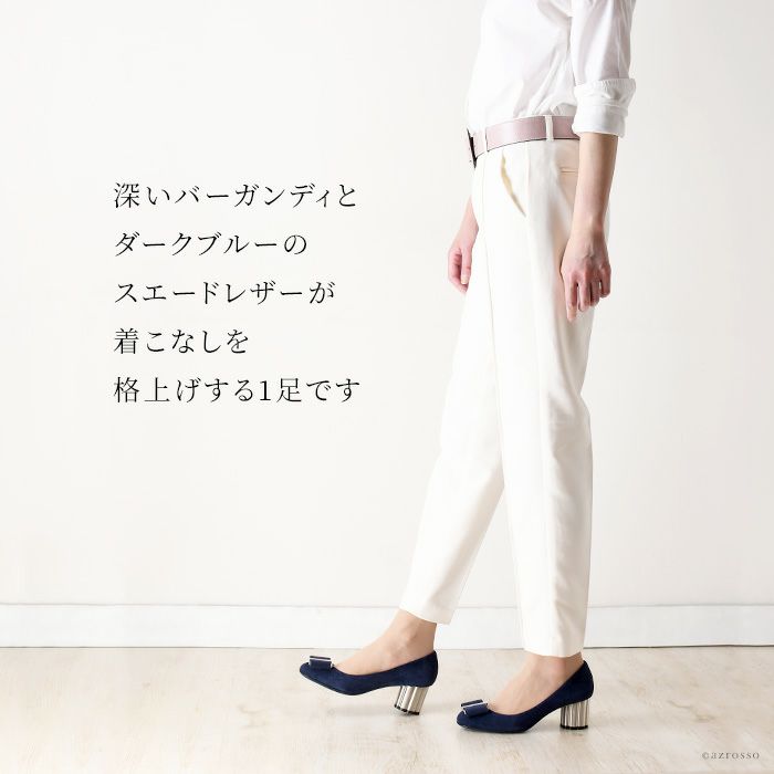 残23cm-26cm|フェラガモ カプア パンプス スエード レザー チャンキーヒール ボルドー レッド ブルー 青 Salvatore Ferragamo レディース 正規品 CAPUA