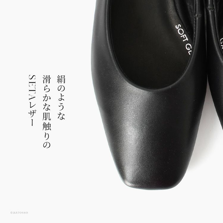 フラットとスクエアトゥ、どちらも歩きやすく、疲れにくいパンプスなので、立ち仕事も含めたビジネスシーンに万能な一足。ビジネスシーン以外では、無難な色だと野暮ったくなるデザインなので、女性らしさを出すために色で遊んでみてください。