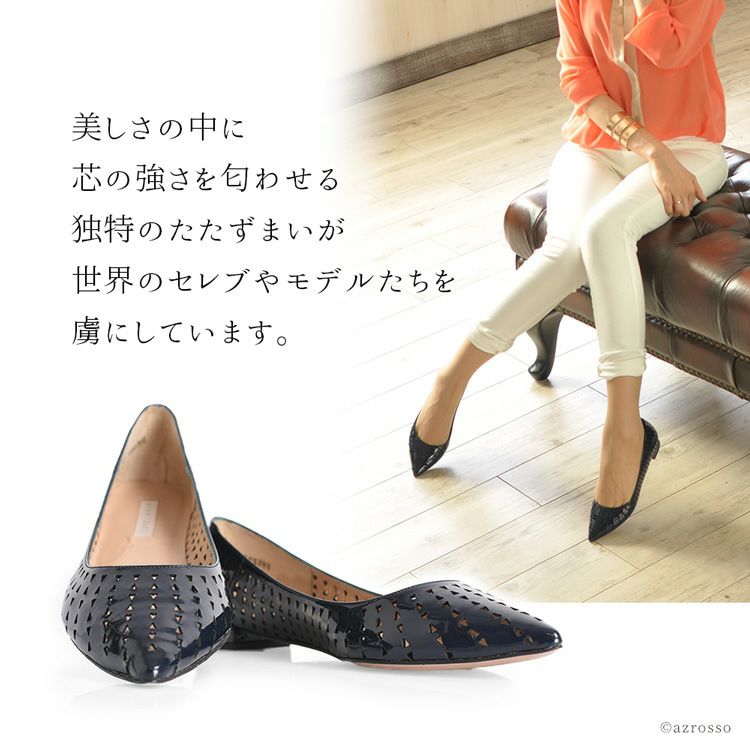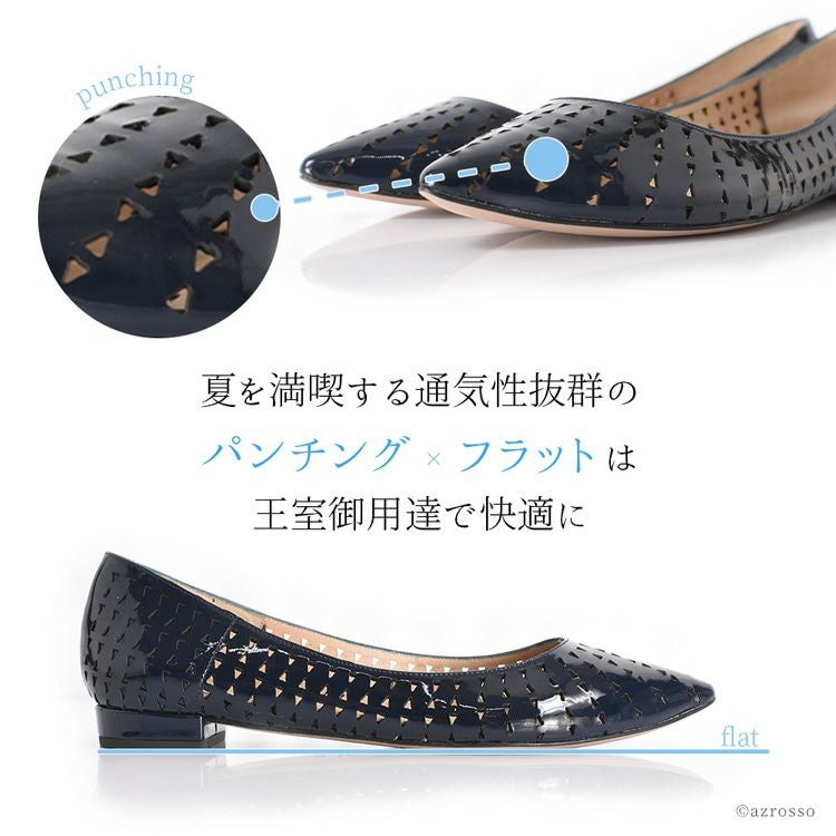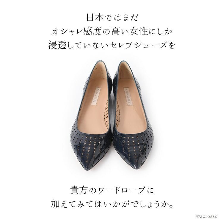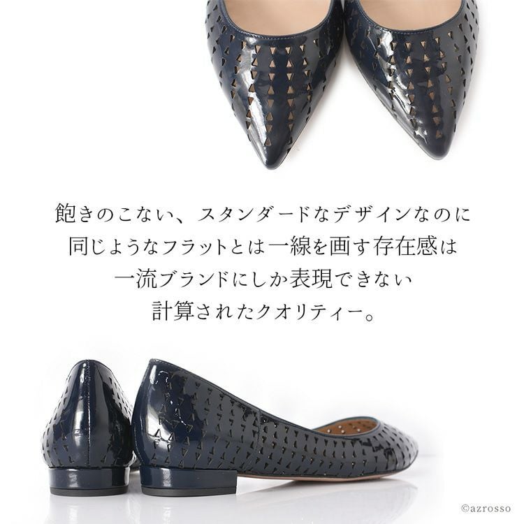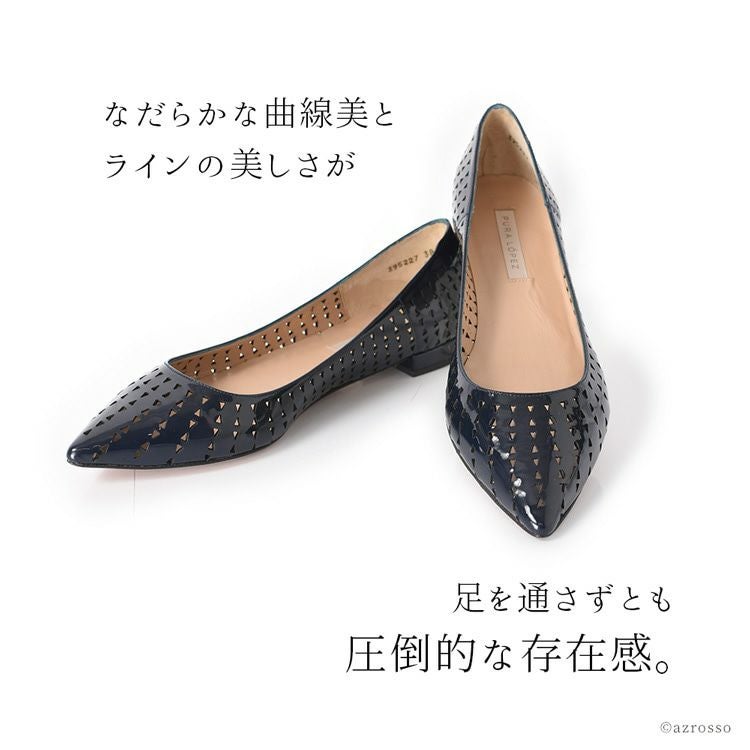 ※特価の為返品・キャンセル・交換無料サービス対応不可。※交換対応は、通常販売時のお買い物通りのご案内です。※サイズ交換希望で、ご交換希望サイズが欠品の場合は返品不可 残24.5cm│パンチング エナメル フラットパンプス ポインテッドトゥ PURA LOPEZ プーラロペス スペイン製