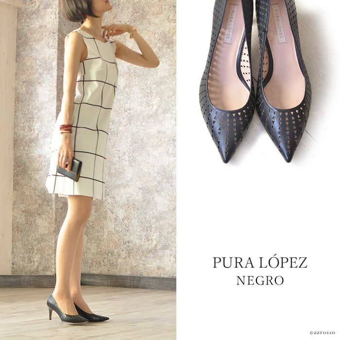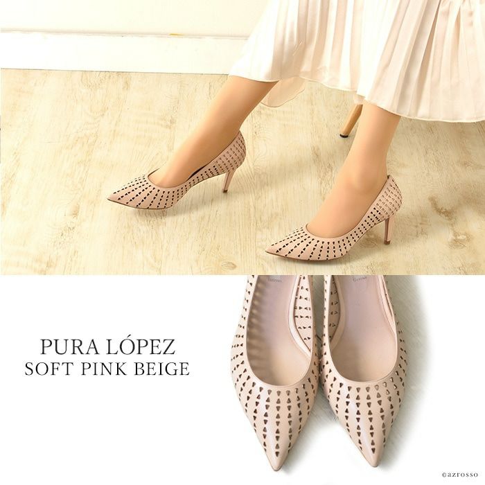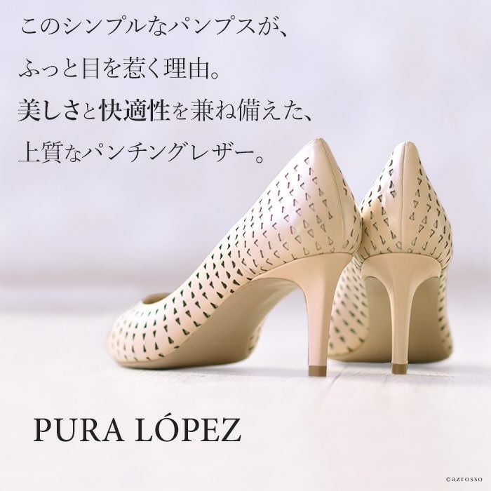 ※特価の為返品・キャンセル・交換無料サービス対応不可。※交換対応は、通常販売時のお買い物通りのご案内です。※サイズ交換希望で、ご交換希望サイズが欠品の場合は返品不可 残24cm-25cm│7cmヒール パンチホール パンプス ポインテッドトゥ PURA LOPEZ プーラロペス スペイン製
