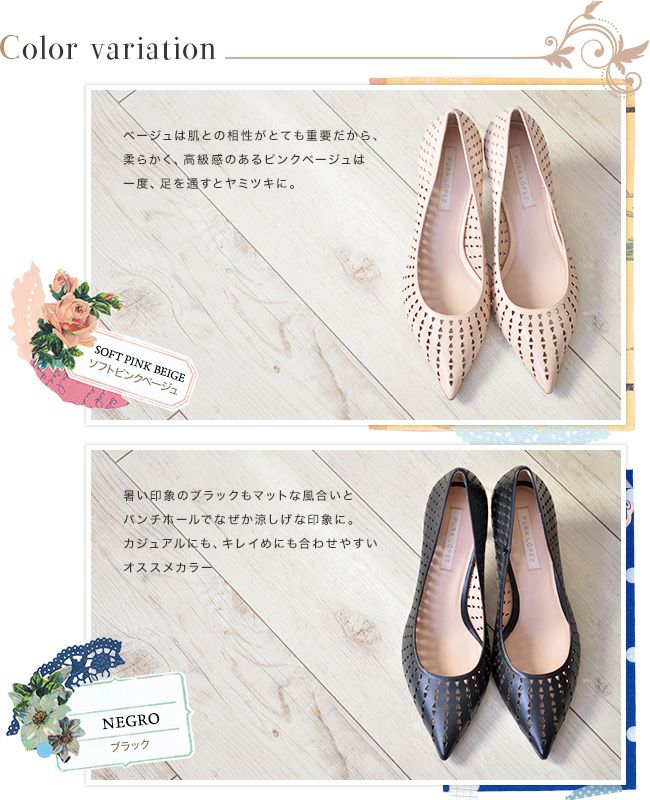 項目の各ページでは、パンプスの種類毎での特徴、使いやすいシーンやシチュエーションなどをご紹介しており、具体的なイメージをお持ちいただくことができます。
