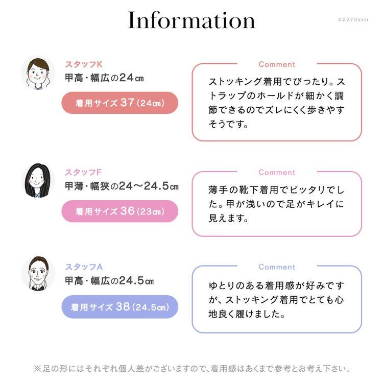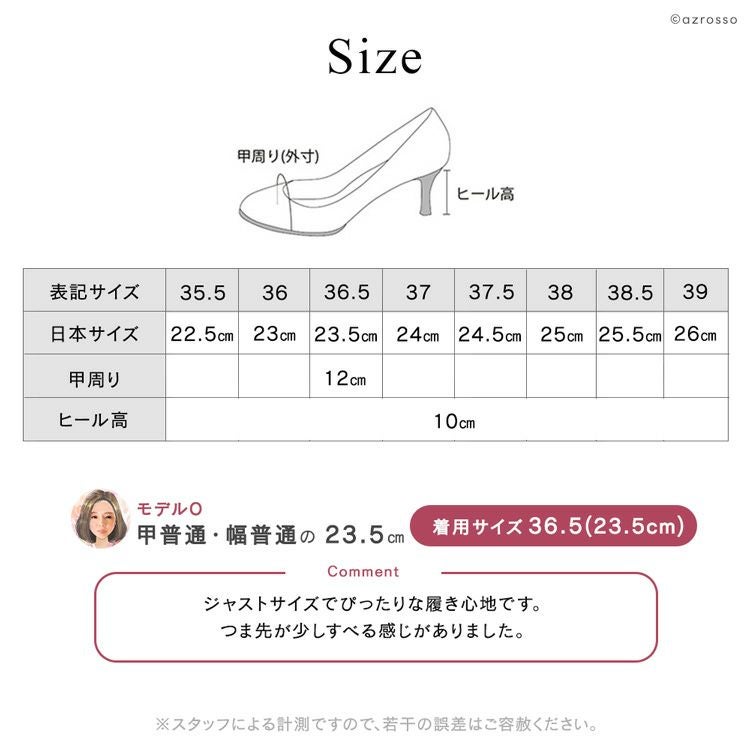 お客様がパンプス選びを簡単に行っていただけるよう、パンプスの「つま先の種類」と「ヒールの高さ」別に早見表をご用意させて頂きました。早見表を活用することで、お客様にピッタリな1足を見つけることができますのでとても便利です。