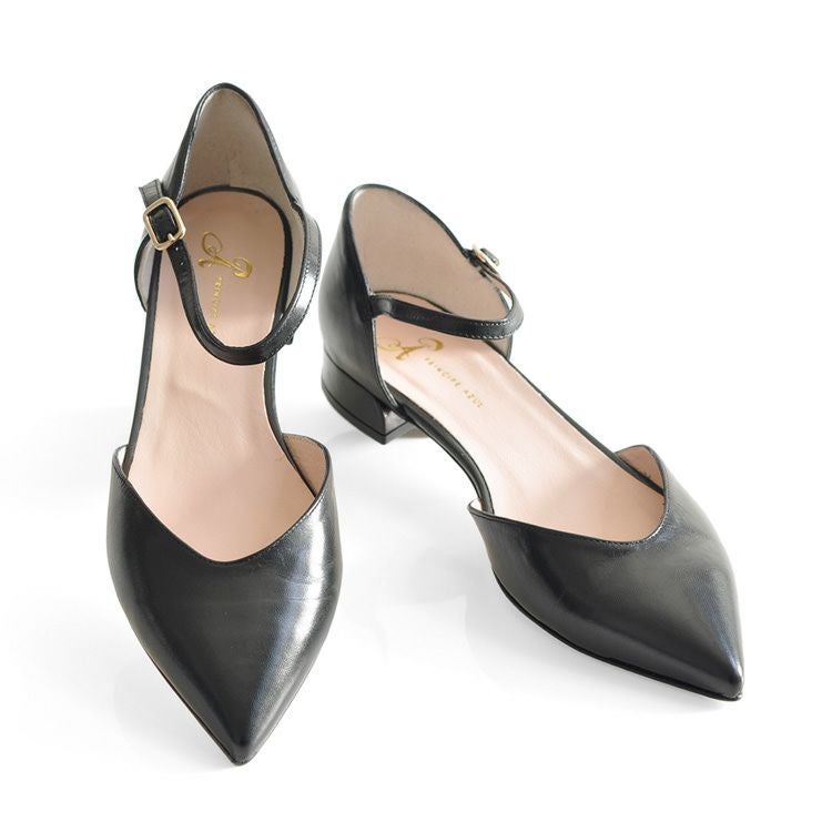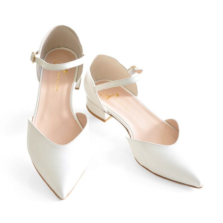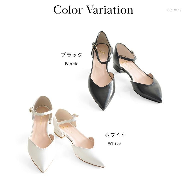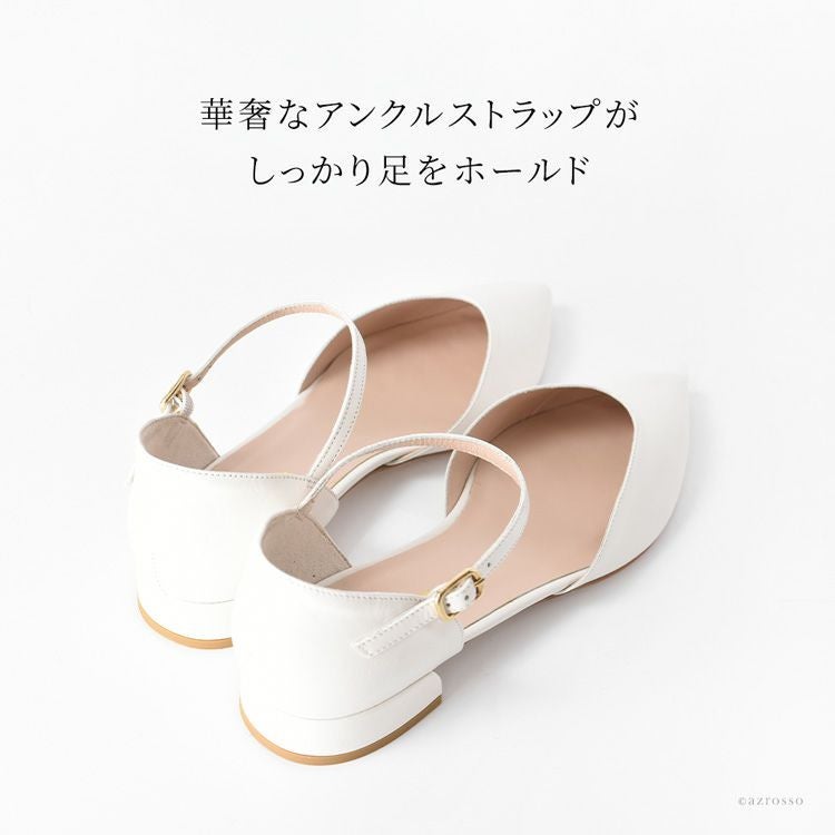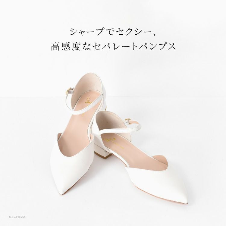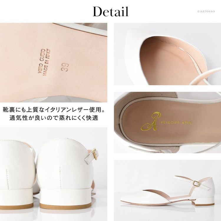 ハイヒールに負けない美しい足元と圧倒的履き心地をお約束するフラットなセパレートパンプス。理想の靴を作り続けるスペインブランド Principe Azul(プリンチペアズール)が作る上品なポインテッドトゥパンプス 残24.5cm-25cm│フラット セパレートパンプス 本革 アンクルストラップ サイドオープン ポインテッドトゥ フラットパンプス レザー ブランド ホワイト 白 PRINCIPE AZUL プリンチペ アズール