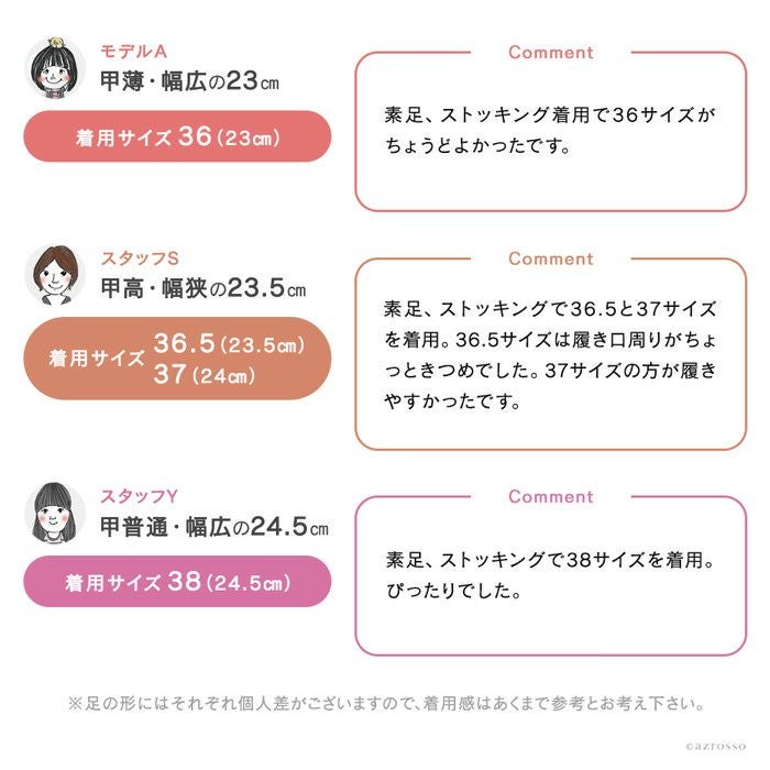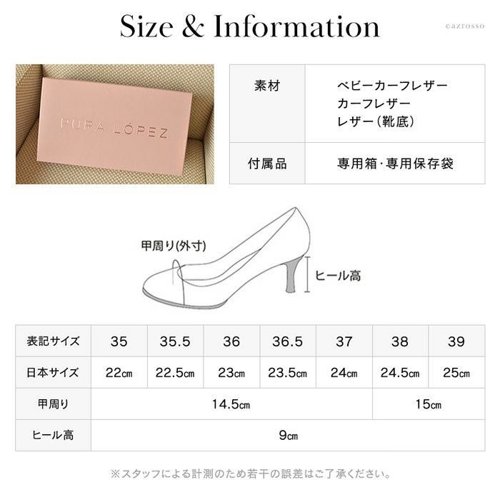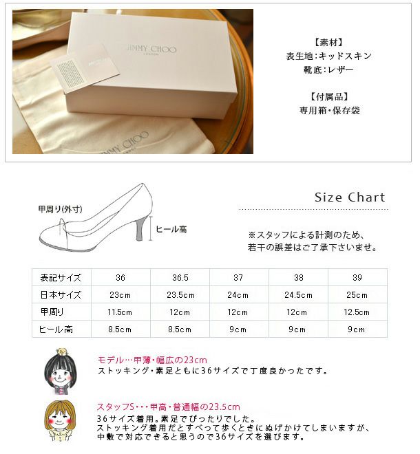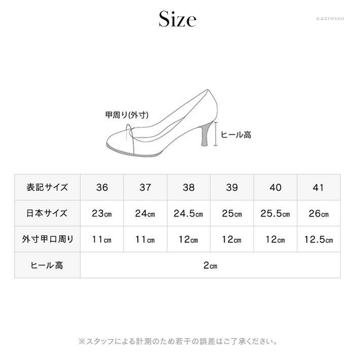 お客様がパンプス選びを簡単に行っていただけるように、パンプスの「つま先の種類」と「ヒールの高さ」別に早見表をご用意させていただきました。早見表を活用することで、お客様にピッタリな1足を見つけることができますのでとても便利です。