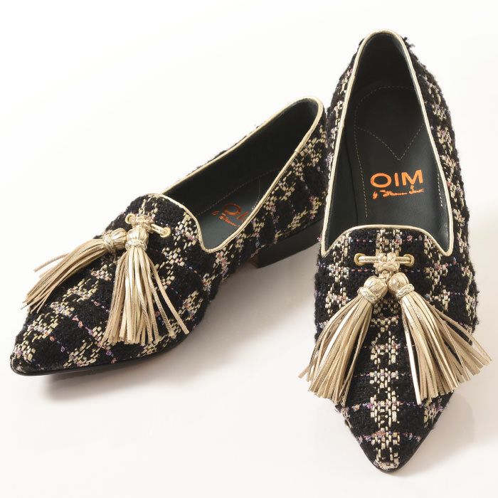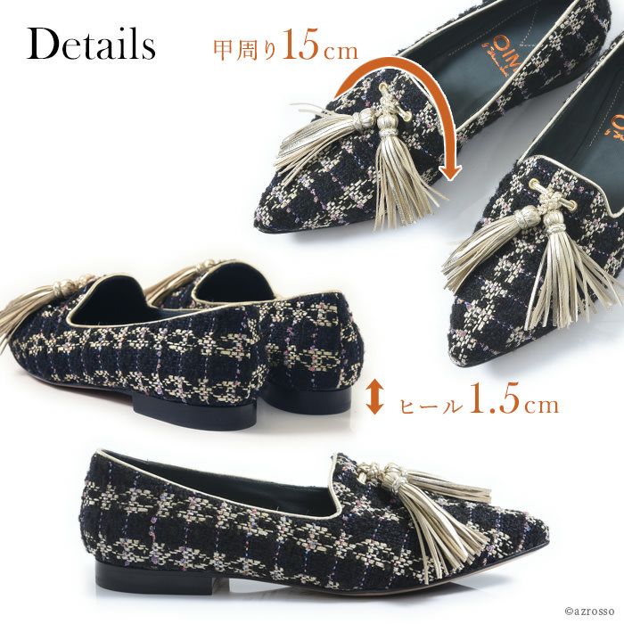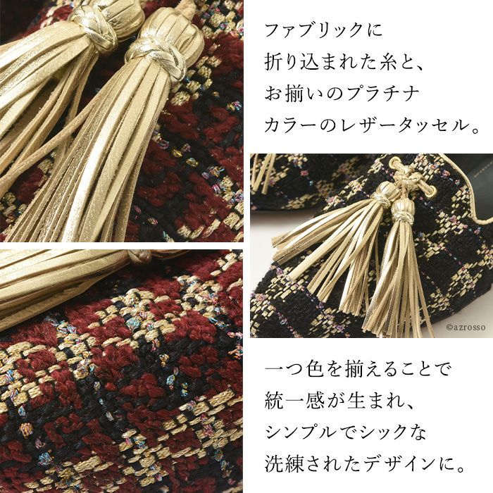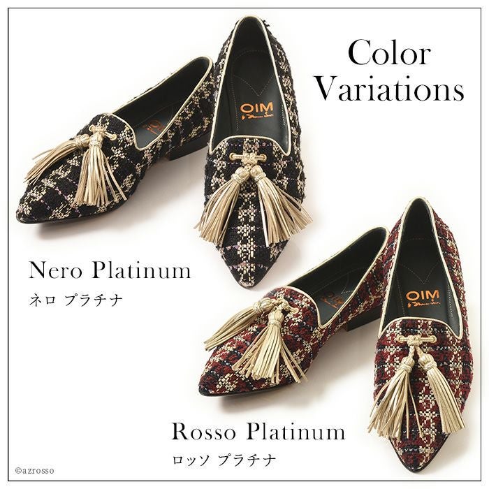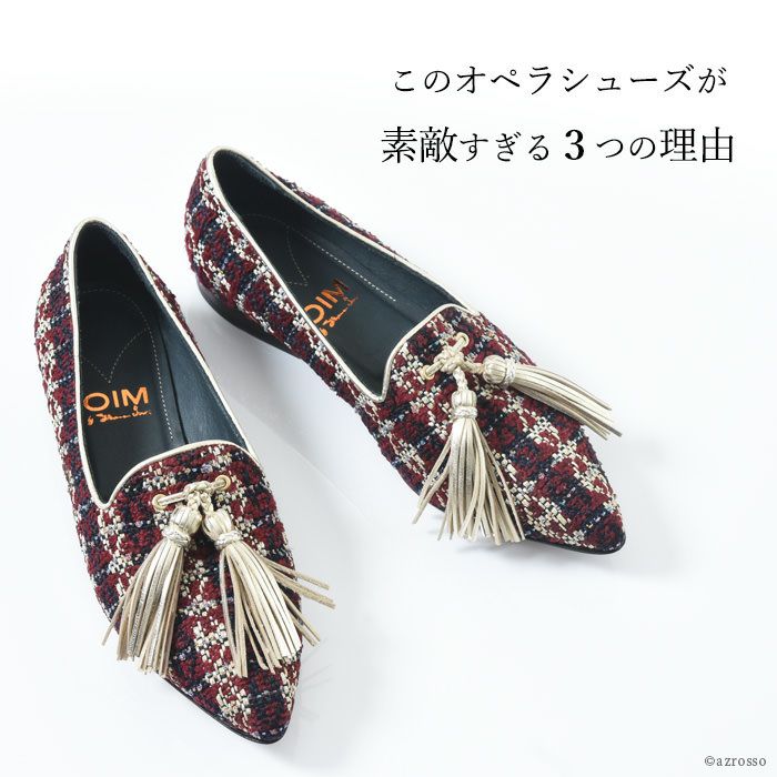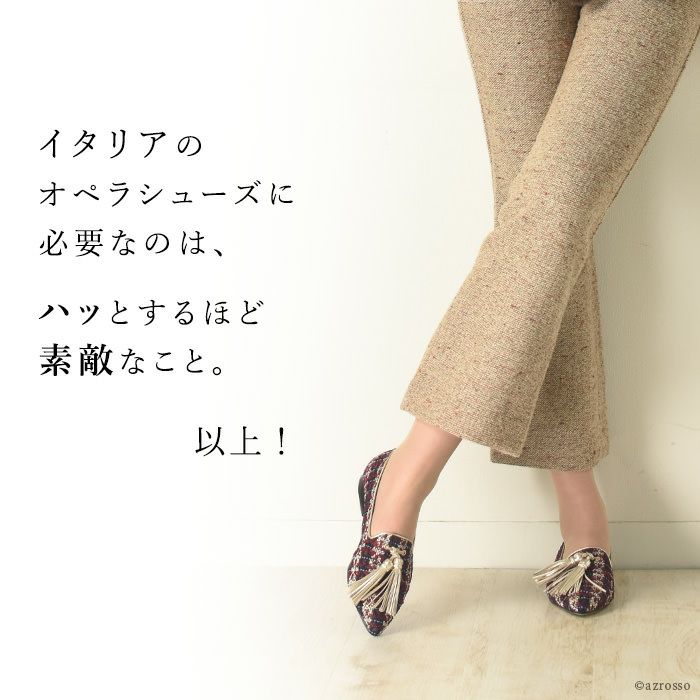 23cm-25cm|ポインテッドトゥ オペラシューズ 本革 タッセル ファブリック素材 イタリア製 レッド 赤 ブラック 黒
