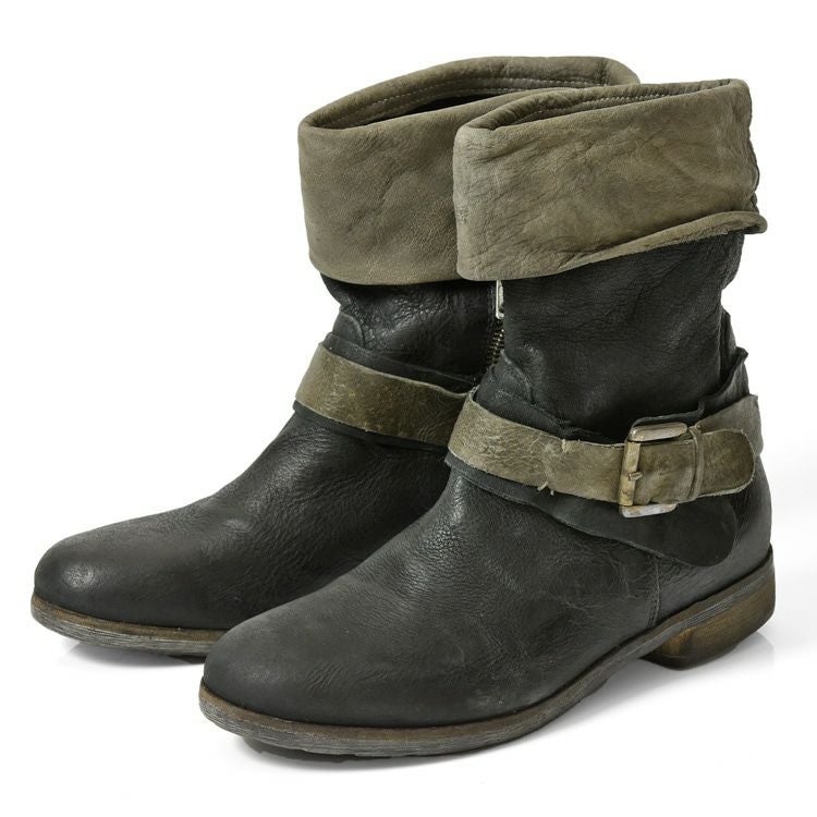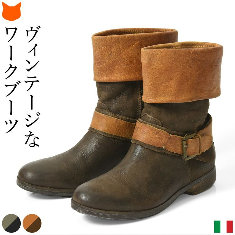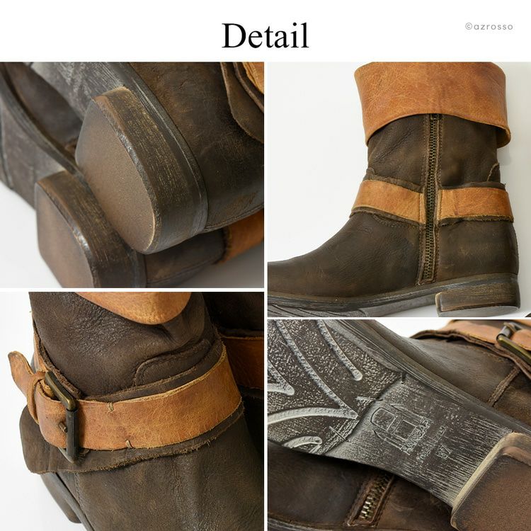ウォッシュ加工 ショートブーツ ヴィンテージ ワークブーツ ファスナー付き イタリア製 ブランド HANGER ハンガー キャメル ブラウン ブラック グレー