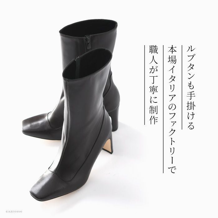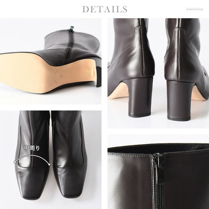 ▼特徴:スクエアトゥ|ミドル丈|ロング丈|サイドジップ|ファスナー付き|セットバックヒール|プレートヒール|太ヒール|ミドルヒール|ハイヒール|痛くない|履きやすい|歩きやすい