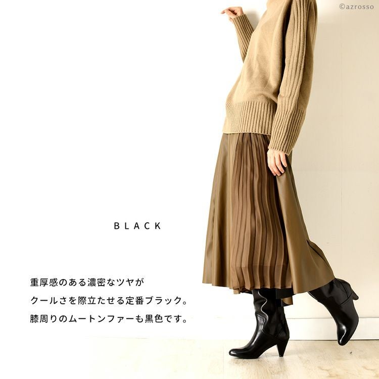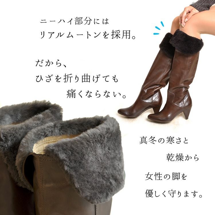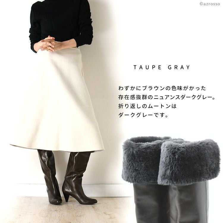 こちらのブーツは、ヒザ上部分が「ムートン」、ヒザ下部分は「レザー」となっております。