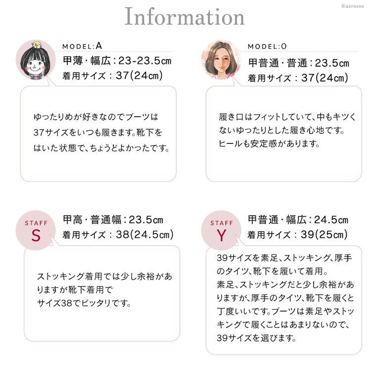 コメント:ゆったりめが好きなのでブーツは37サイズをいつも履きます。靴下をはいた状態で、ちょうどよかったです。