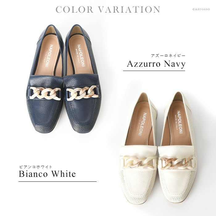 ヌバックレザーの素材で差をつける、おしゃれ感度抜群のシックなローファー。柔らかい質感が優しい印象で、ローファーのマニッシュ感やメンズライク感があまり得意でない方にもおすすめ。フェミニンなお洋服や、甘めのブラウスなどにもしっくり合わせていただけます。ウッド調チェーンの装飾もおしゃれ。