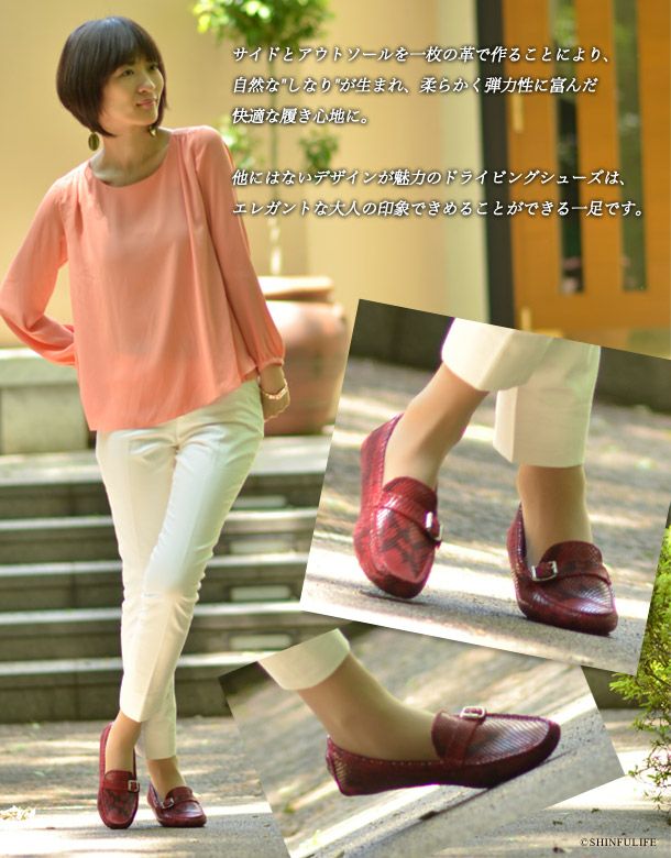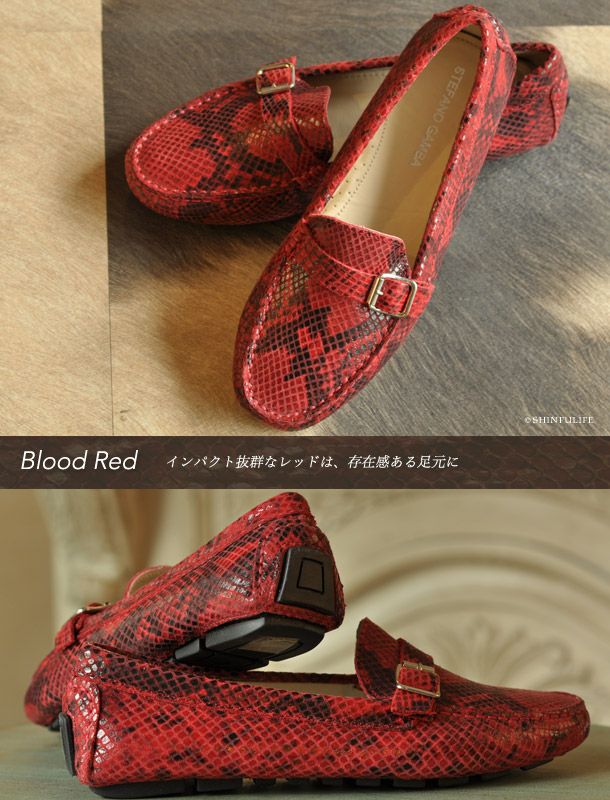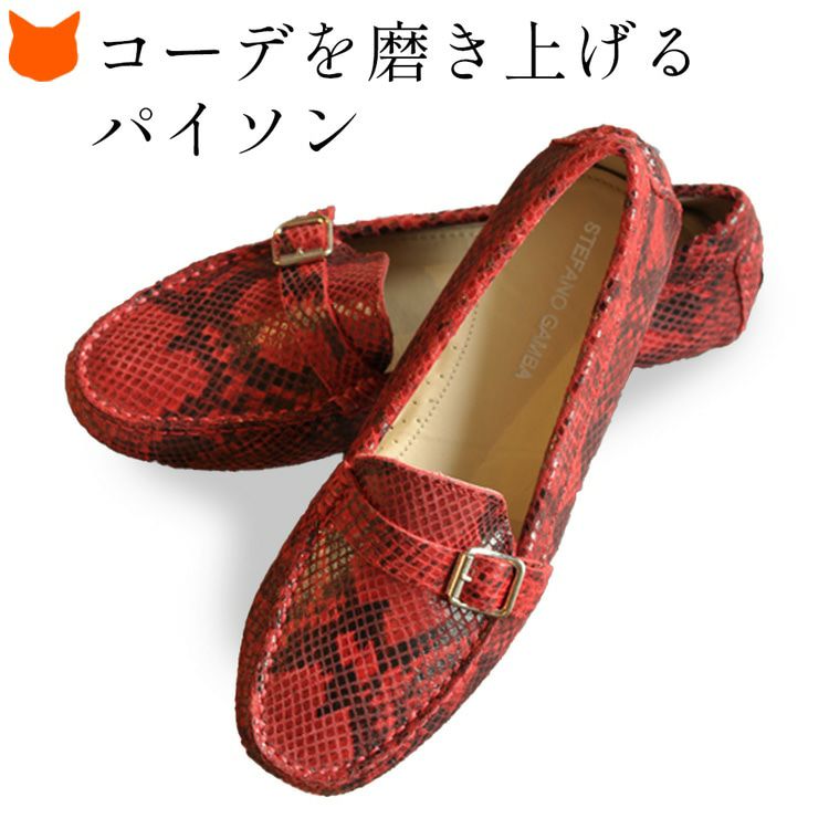 世界的に人気のヨーロッパシューズ ブランド STEFANO GAMBA(ステファノガンバ)AMBRA ドライビングシューズ/レディース/シューズ/ドライビング/靴/フラット/ローファー/モカシン/ホワイト/レッド/ぺたんこ/インヒール/ヘビ柄/パイソン/本革/正規品