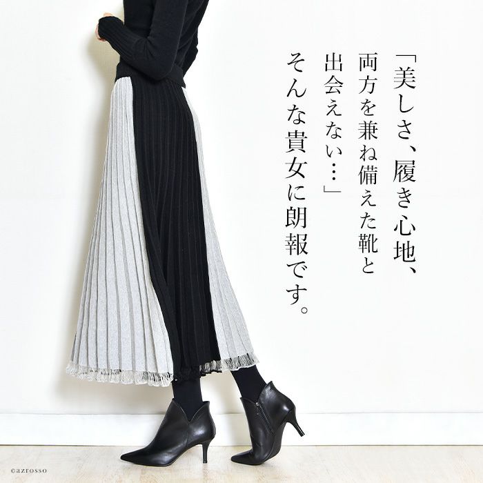 スマートなニットワンピースにブーティは相性抜群です。エレガント&セクシーなポインテッドトゥとピンヒールは、着こなしの美しさを底上げしてくれます。とかく日本という国は靴を脱ぎ履きする機会がとっても多い国。そのため、さっと脱ぎ履きできるように、日本人の為にイタリアのブランドコルソローマ9がサイドゴアタイプのブーティをつくってくれました。