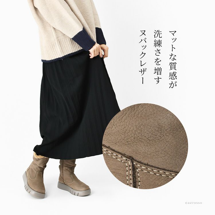 ▼特徴:スラウチブーツ 靴 軽量 ショート丈 履きやすい サイドジップ 疲れにくい ローヒール レザー ブラック 黒 トープ ベージュ 大きいサイズ おしゃれ 痛くない コンフォートブーツ くしゅくしゅ 防寒 マイクロファイバー ボア
