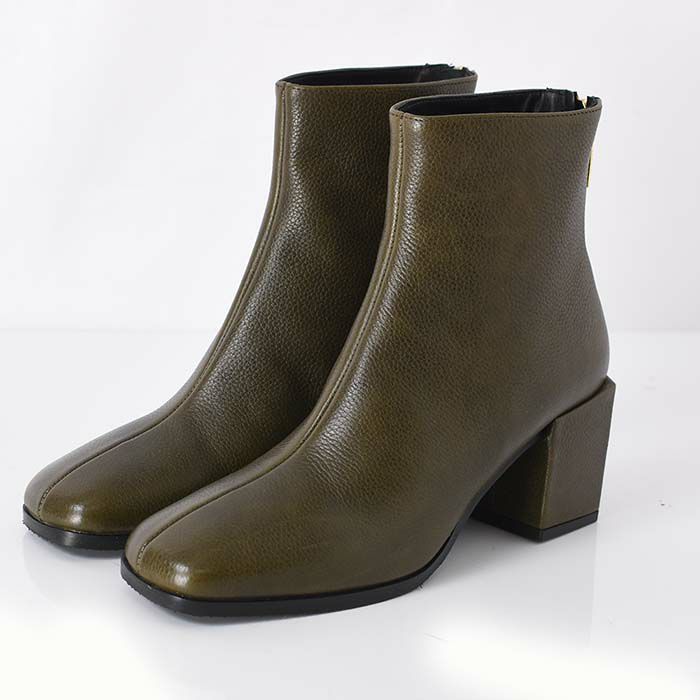 ▼特徴:スクエアトゥ|ショート丈|バックファスナー|ファスナー付き|バックジップ|太ヒール|チャンキーヒール|ミドルヒール|ハイヒール|痛くない|履きやすい|脱ぎやすい|歩きやすい|ショートブーツ|ブーティ