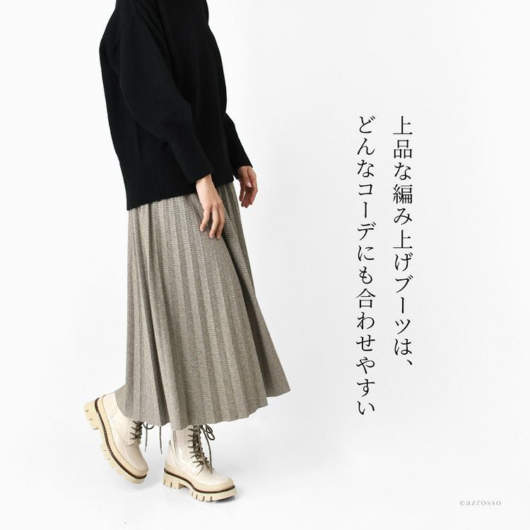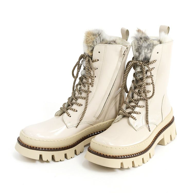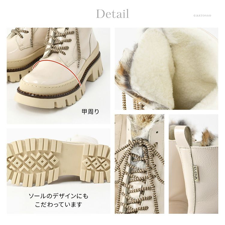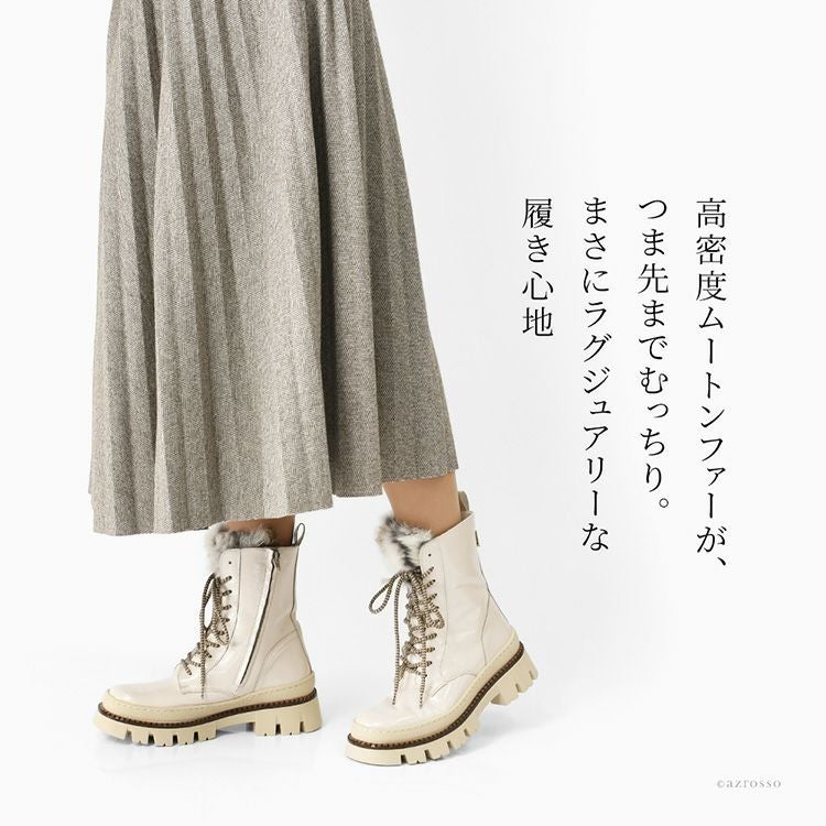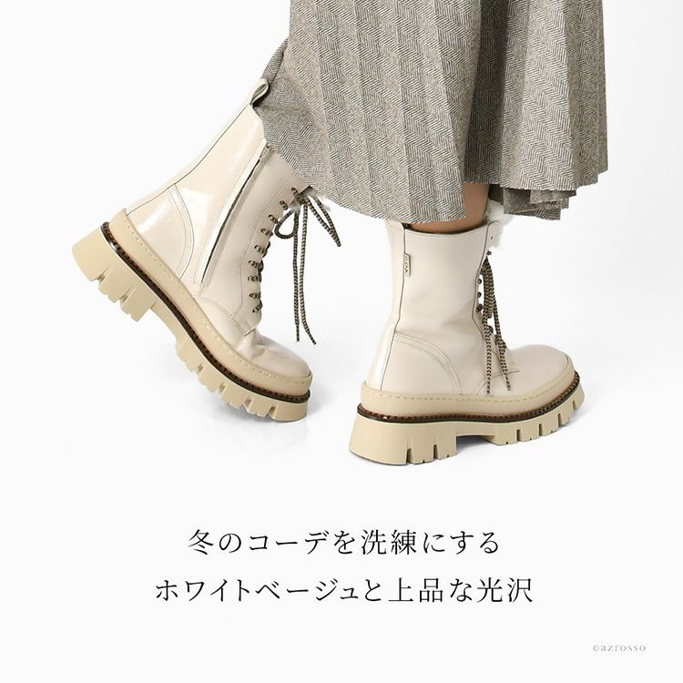 イタリア製 編み上げ ショートブーツ レディース コンバットブーツ 厚底 4cm レースアップブーツ 本革 ホワイト ベージュ 裏ボア 軽量 サイドジップ