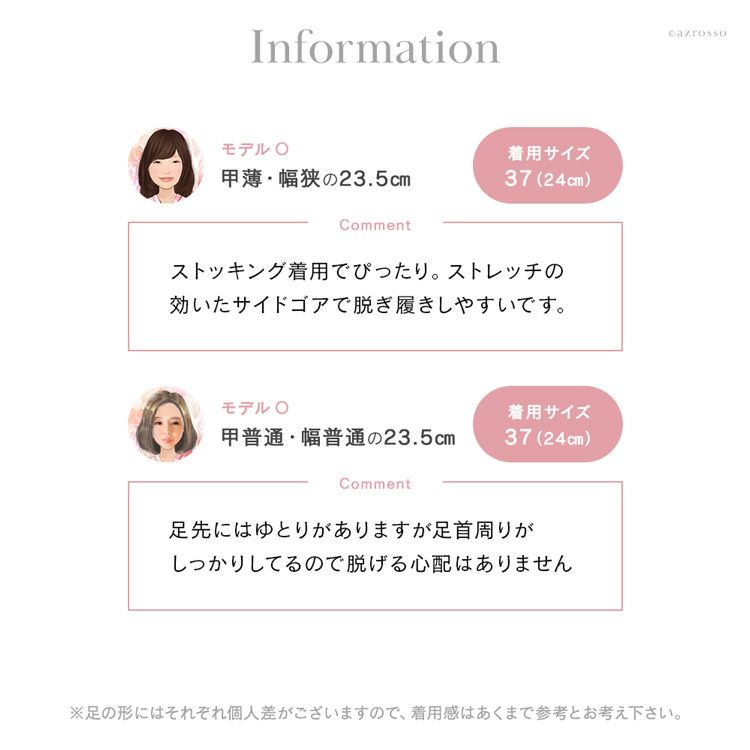 ※足の形にはそれぞれ個人差がございますので、着用感はあくまで参考とお考え下さい。